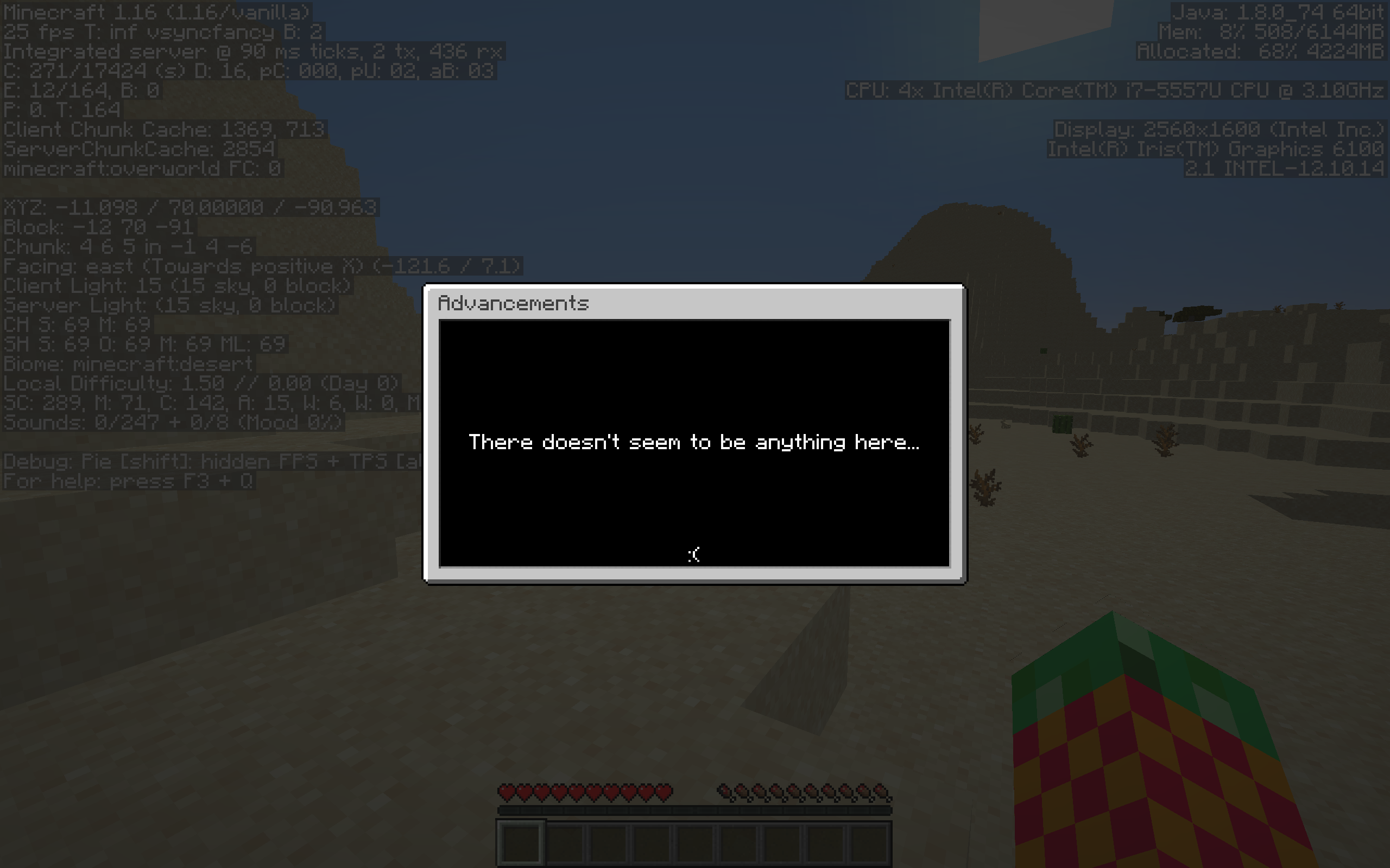 Also attached is a screenshot of a 1.15.2 world loaded in 1.16 client which has the 1.16 advancements in the advancement menu.