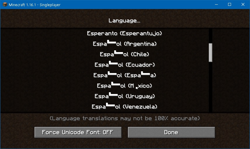 Dear, when changing to version 1.16 JAVA the letters or texts that have accents are deformed, I leave a photo with an error when changing the language