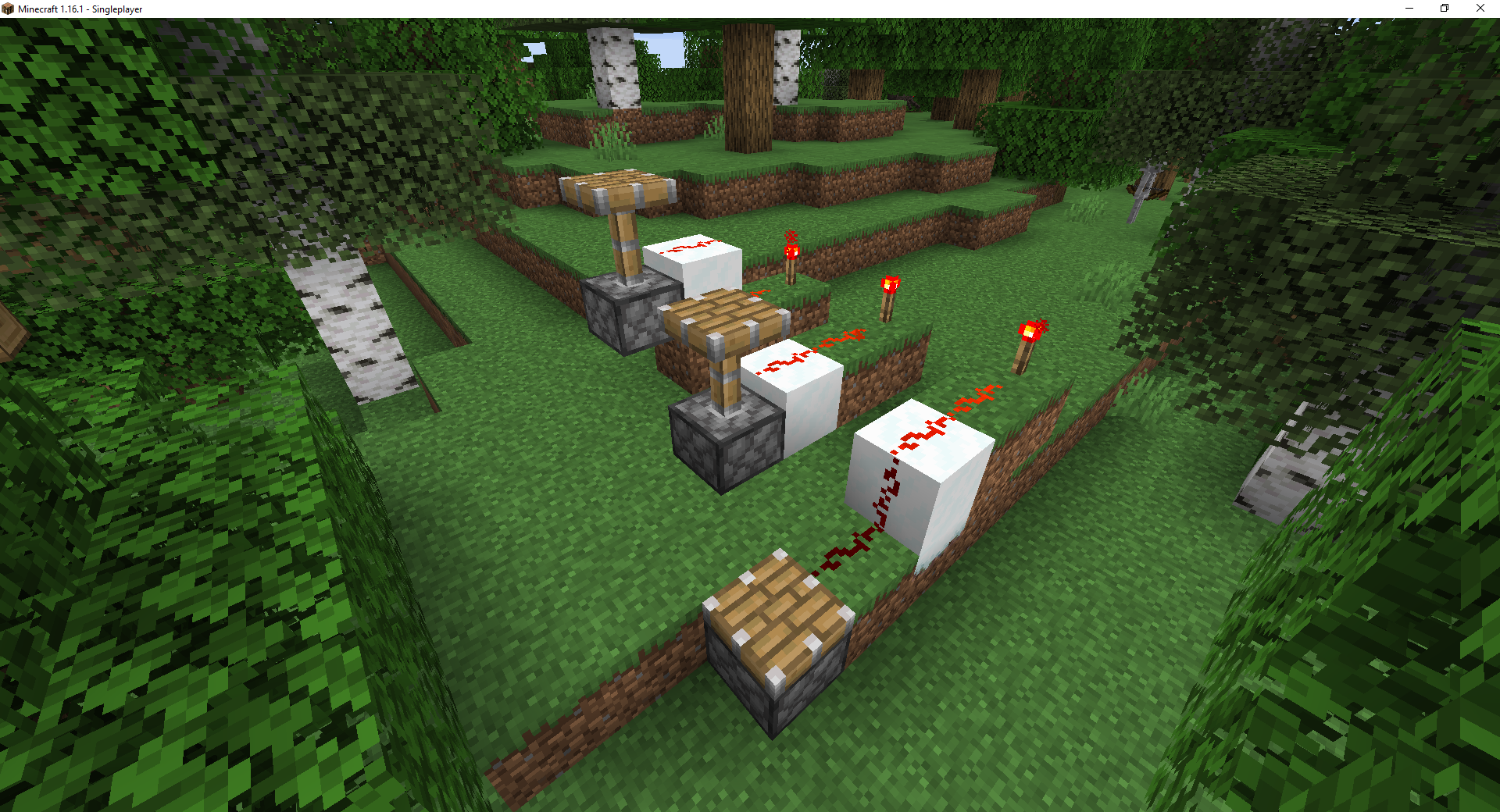 As the screenshots show it only works (Or isn't working as its the bug) with "going down" redstone on the 'Minecraft:snow' (full) block. (It is normally working on 'Minecraft:snow_block').