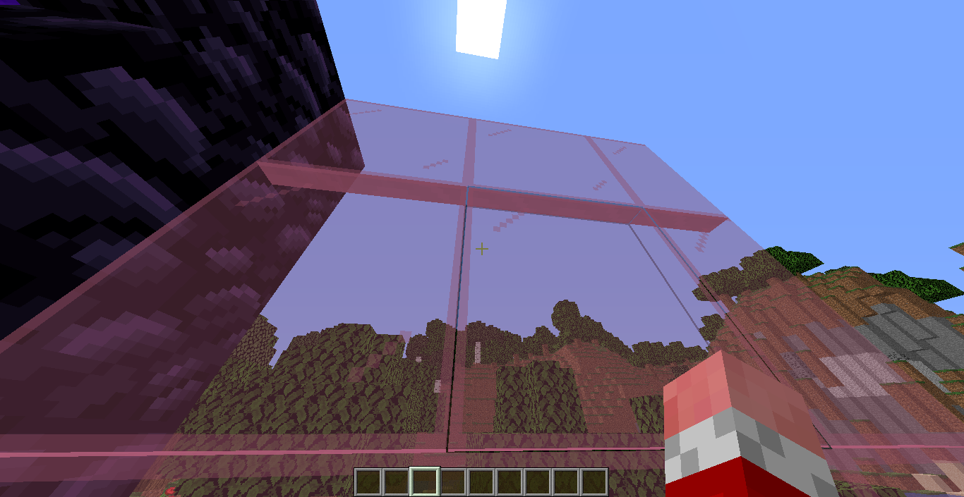 For non-solid, transparent blocks, while the player is looking at the block, the outer pixel gets deleted, allowing the player to see through it. This gives the block a very strange look. It is most obvious for nether portals.