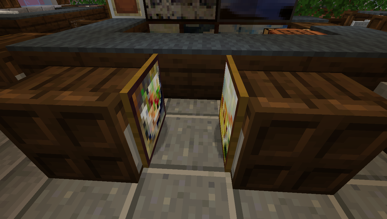 On both sides of the gap, place a painting so the two paintings are facing each other.