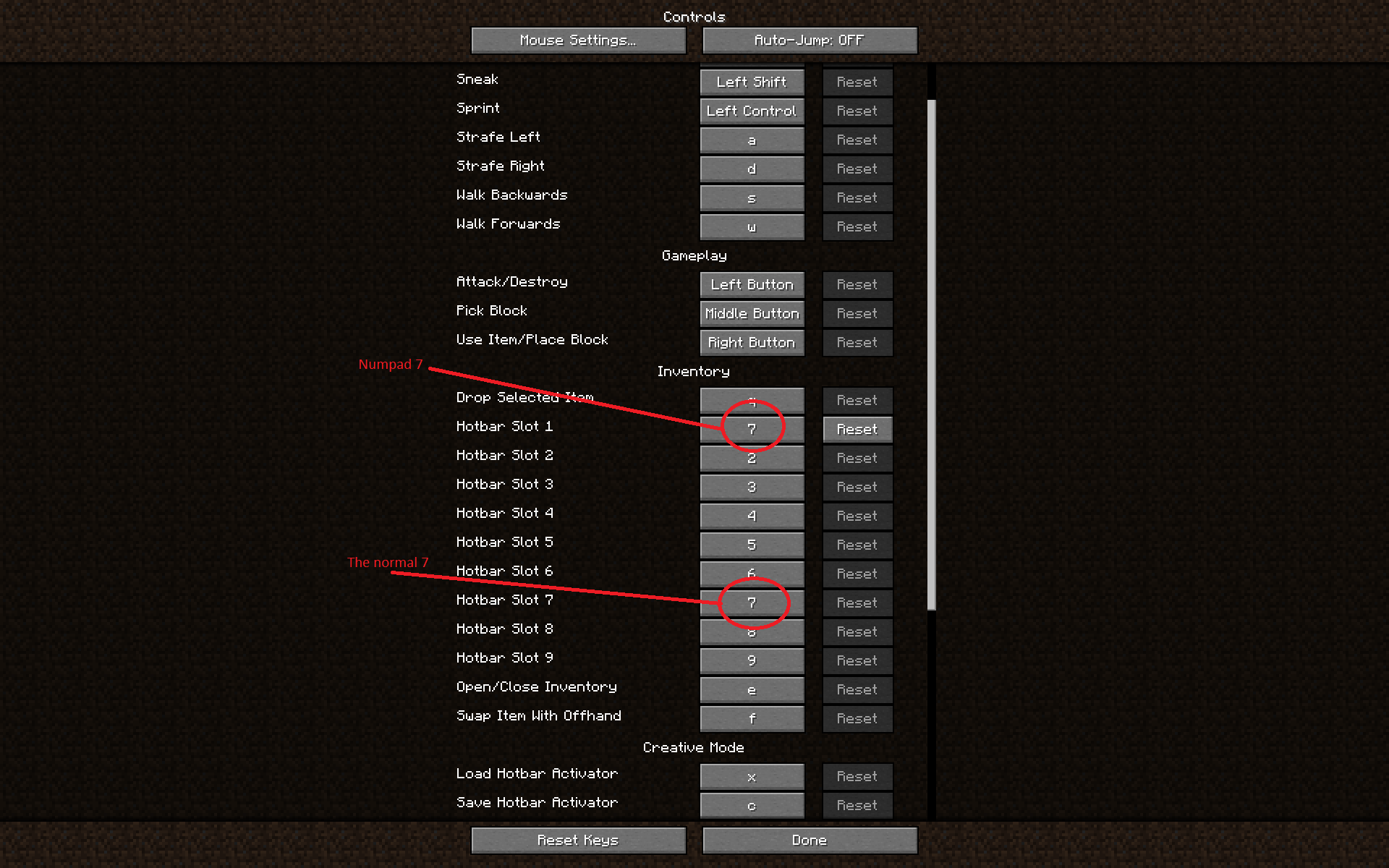 The BugIn controls when changing a control to a numpad number like 7. Instead of saying numpad 7 it just says 7.