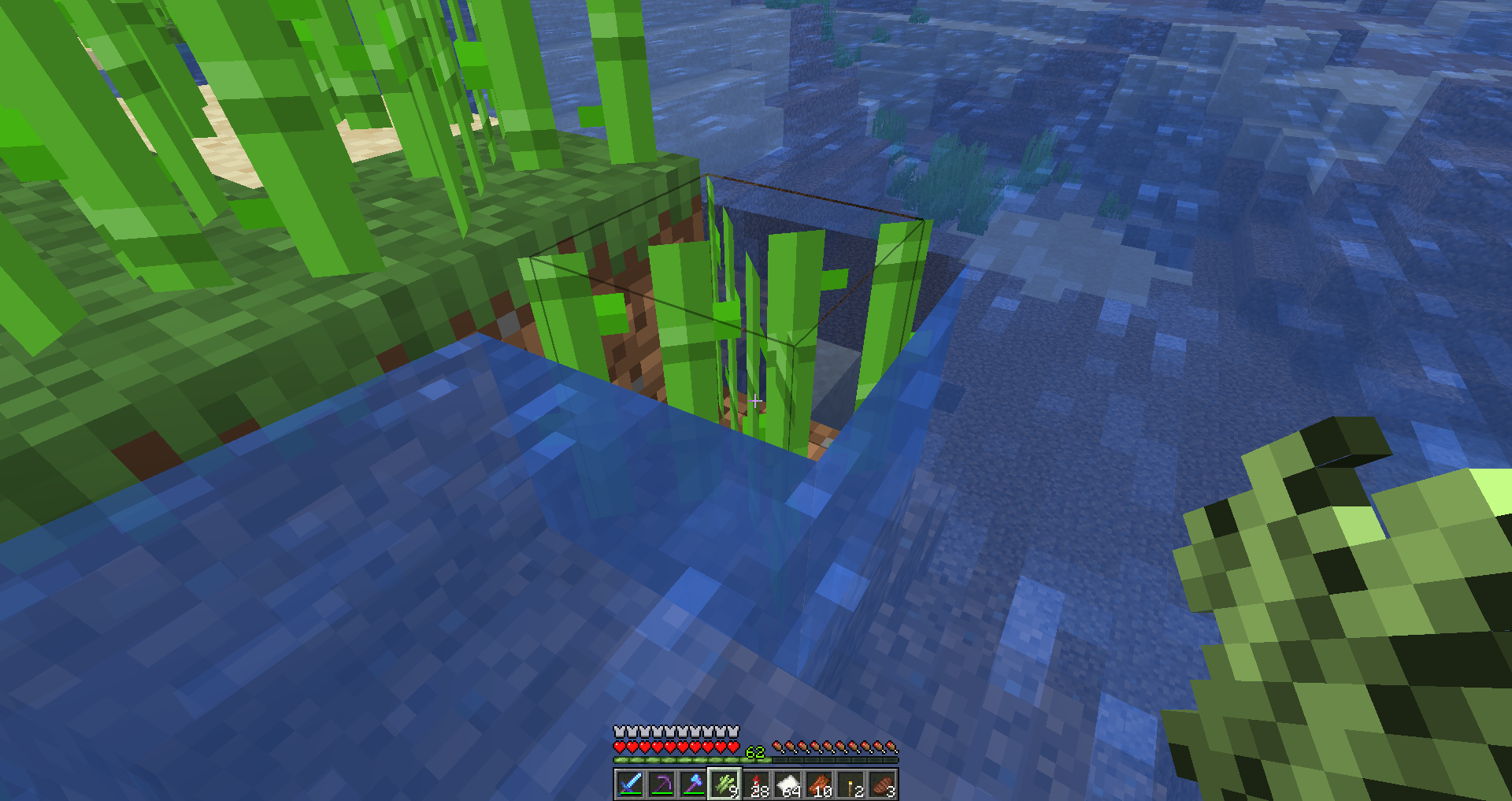 sugar cane can be planted in water as long as there is a solid water block next to it. and the water will not flow to break the sugar cane