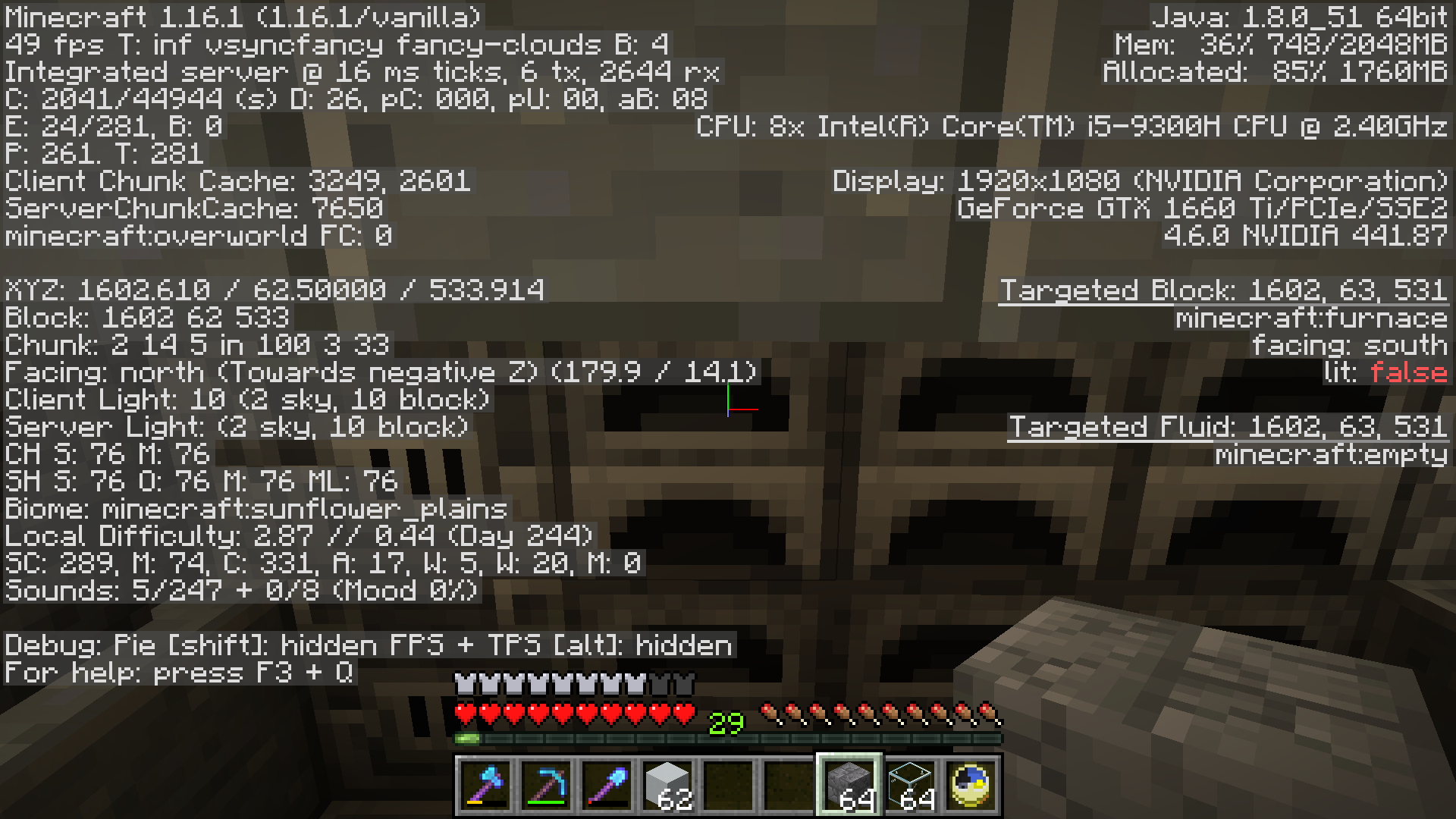 Please provide a screenshot of the setup with your F3 debug screen enabled.