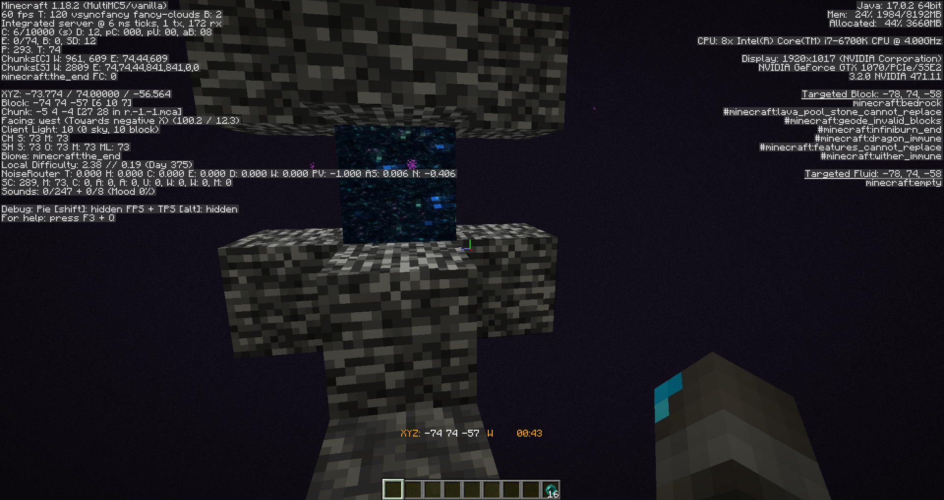 1) There is a deepslate block under the bedrock block which I am spawning in.