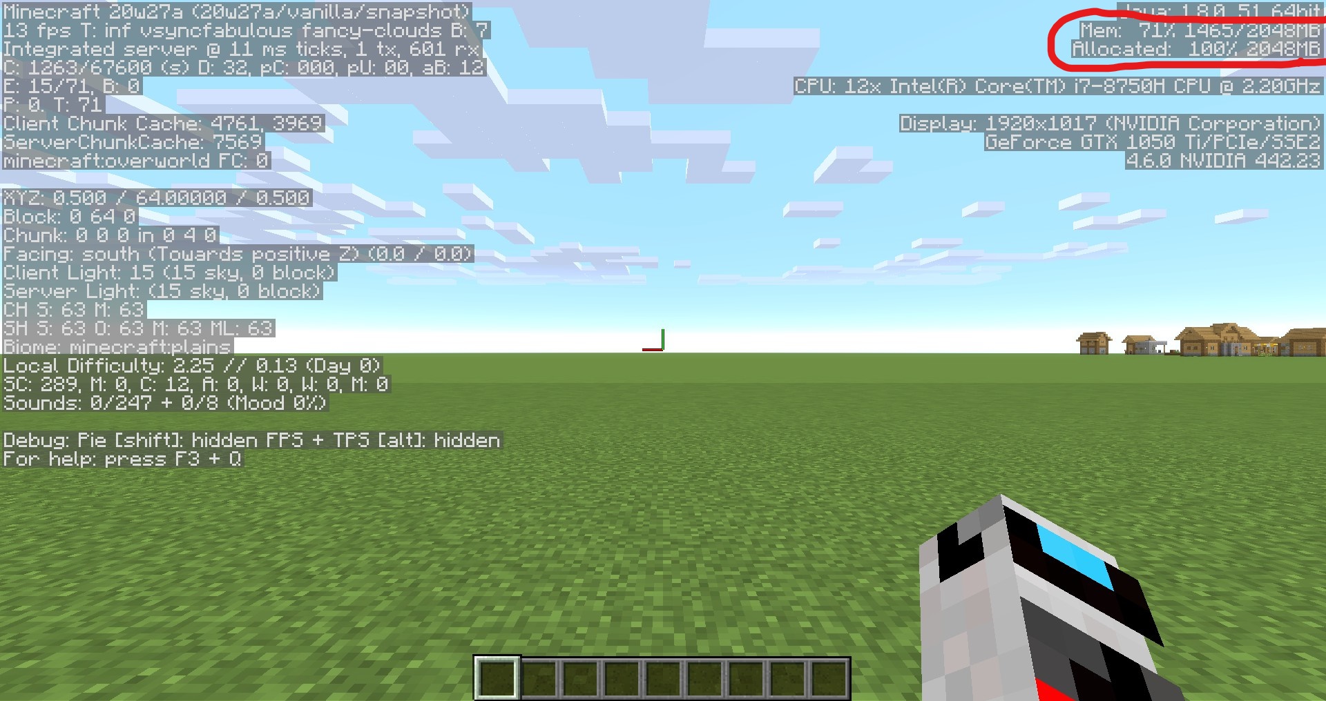 5. The second row on the right side will claim that Minecraft only has 2048MB total RAM