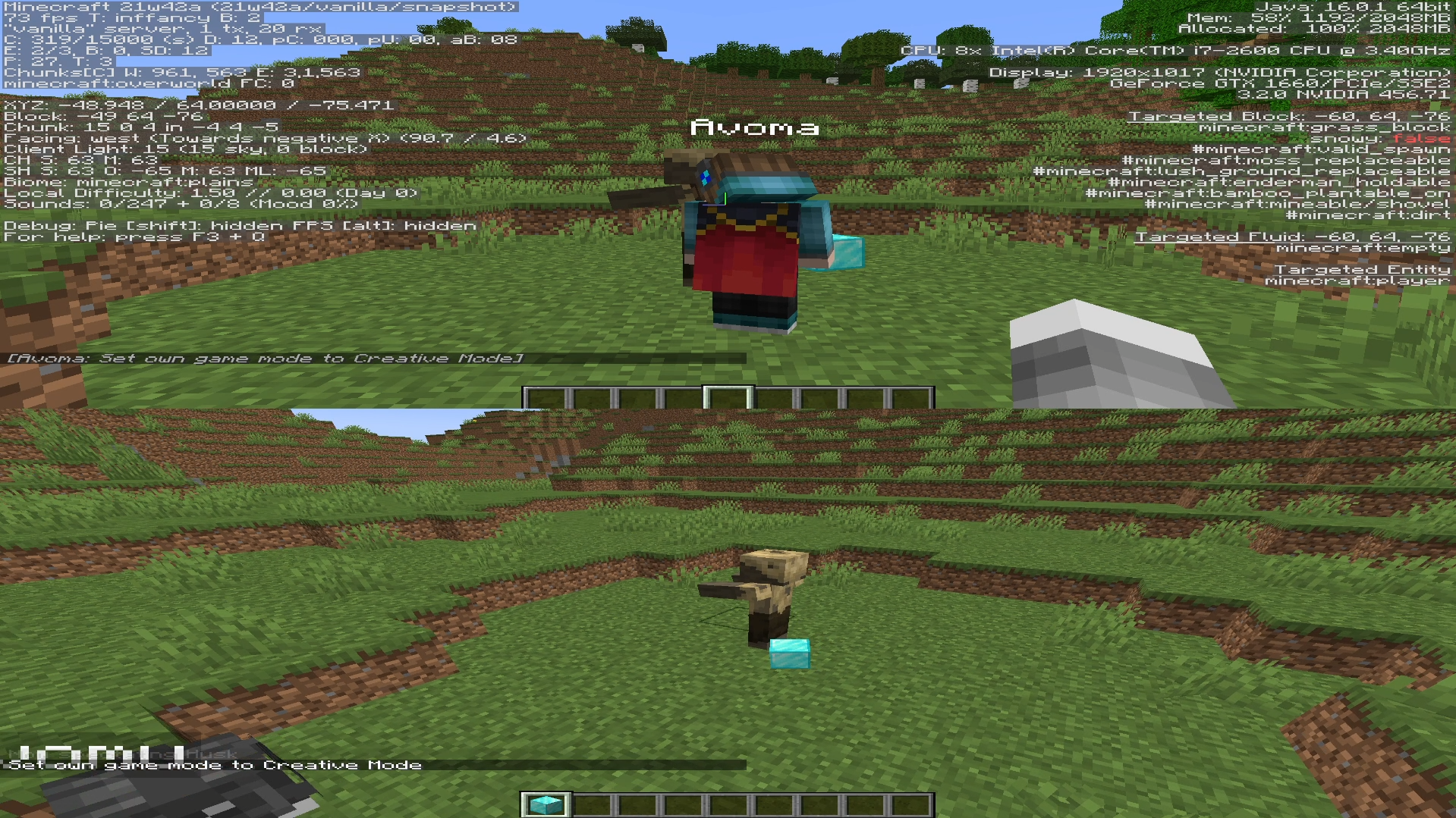 /spectate @e[type=minecraft:husk,limit=1,sort=nearest]Get "Player B" to exit spectator mode and enter creative mode whilst still spectating the husk.