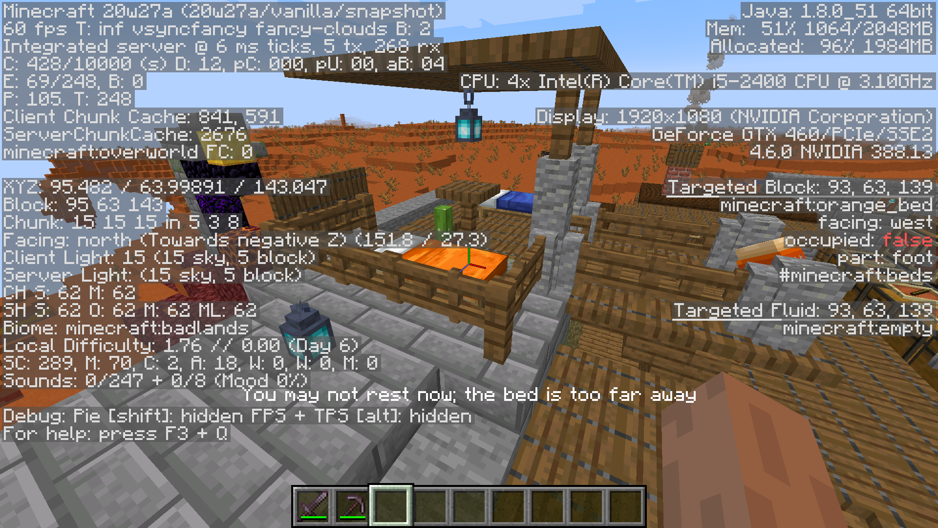 Every time I right-click a bed too far away from it during the day, it will display the You may not rest now; the bed is too far away message.