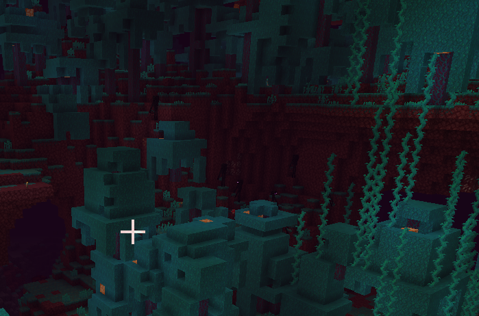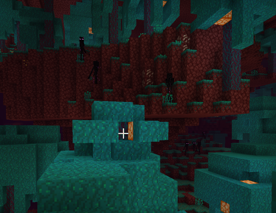 Almost every enderman in the nether is carrying warped nylium, and they place it down everywhere. Base-building and terraforming in or near the warped forest become a constant exercise in removing the warped nylium. More noticeable along borders between biomes as the blocks really stick out. Endermen also teleport through the nether portal with nylium, and will even place it on the nether roof.