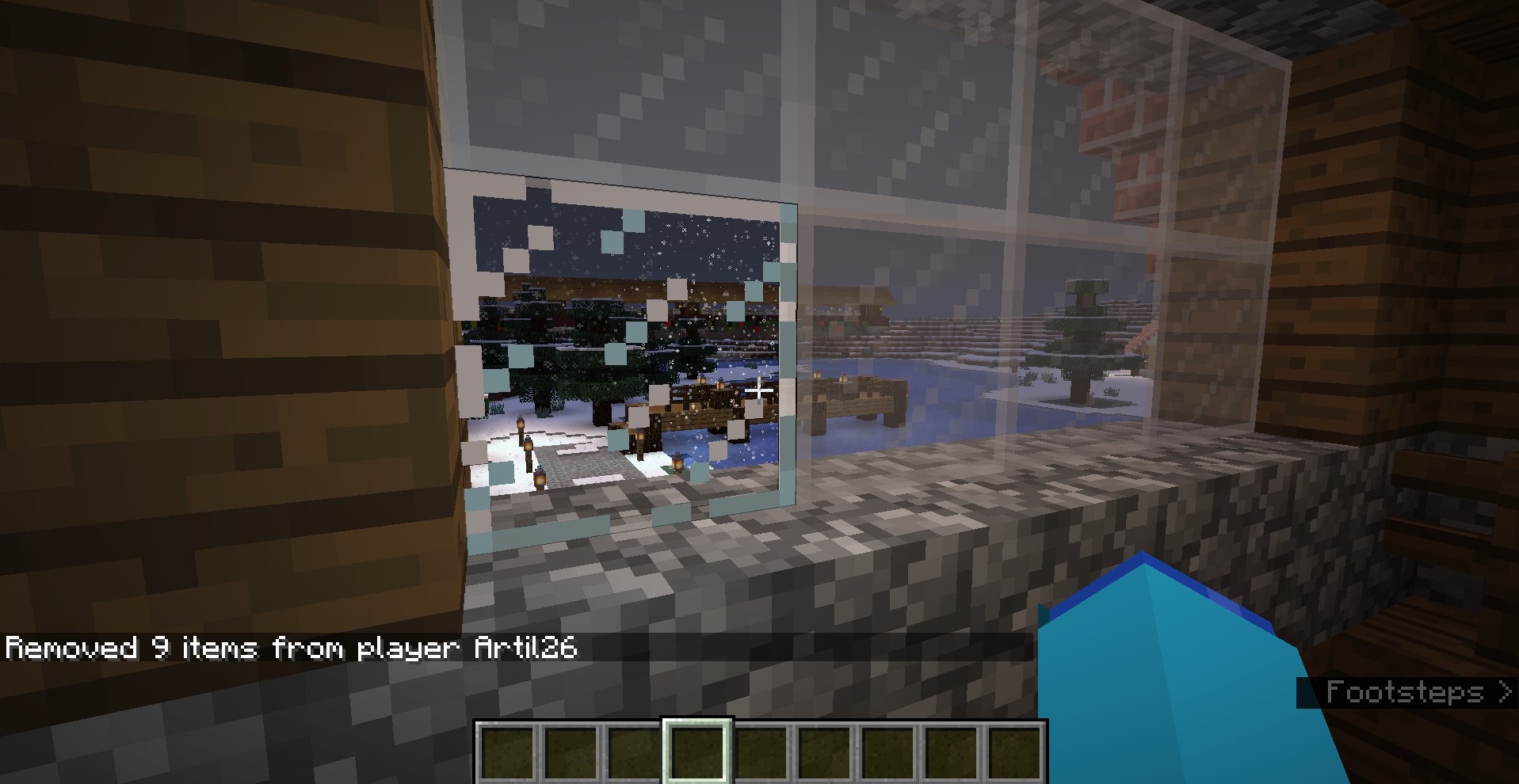 Snow wasn't appearing when I was looking through stained glass panes, but it was appearing when I looked through normal glass panes