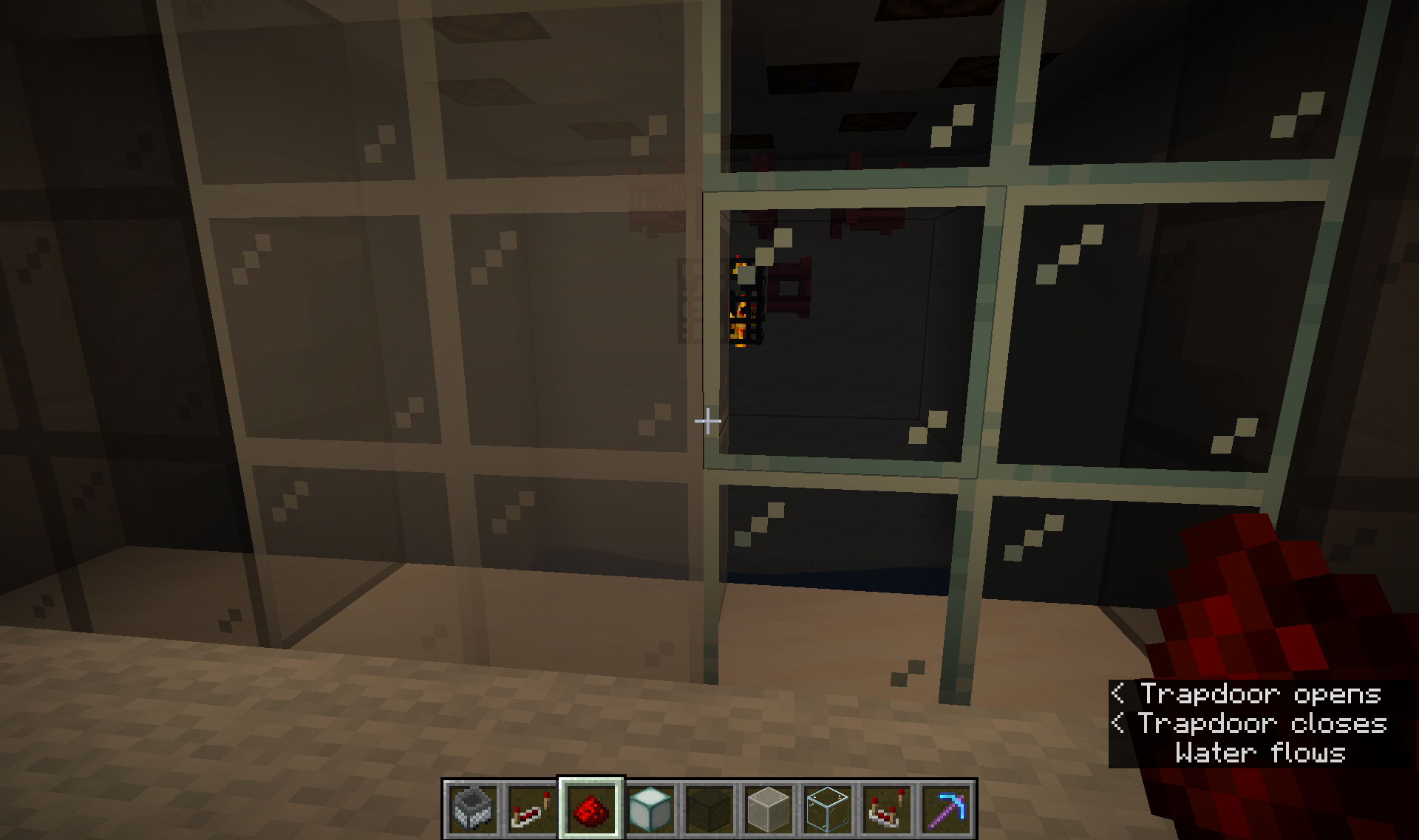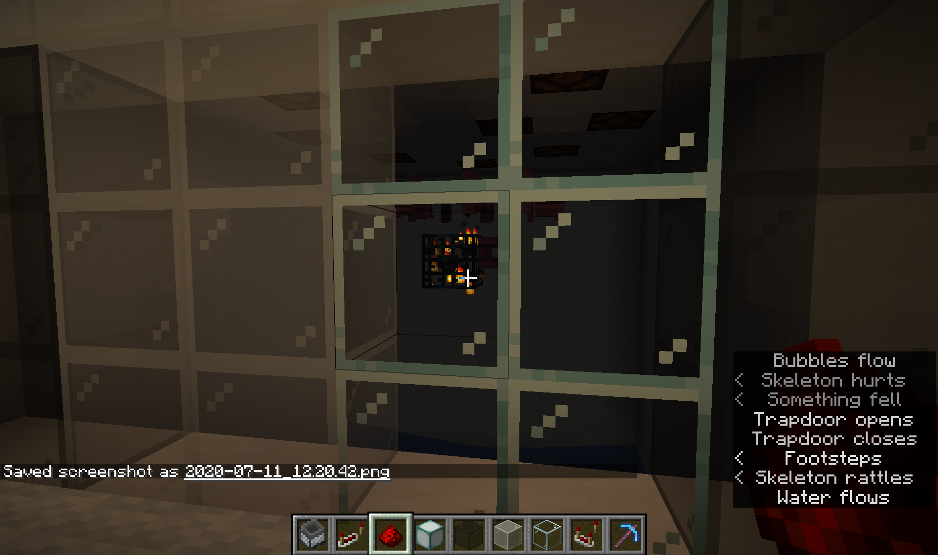 The fire particles that appear when a mob spawner is within range of a player can not be seen through stained glass but can be seen through normal glass.