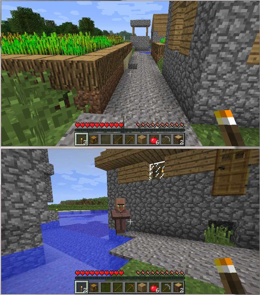 Villages are being generated in very buggy ways. Certain times the path is uneven, or the farms are 1 block above the path (meaning you can't get at them). Houses with doors 2 blocks up with no stairs beneath.