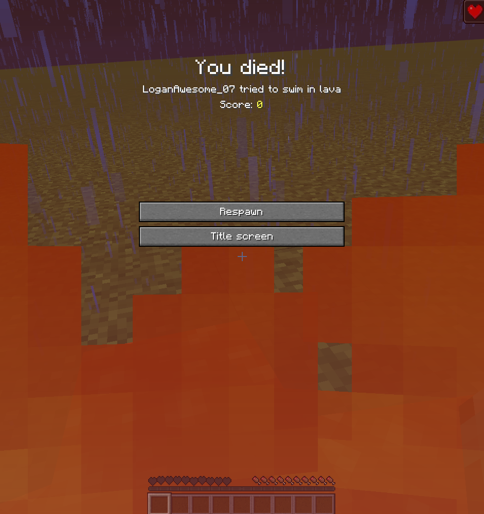 I have a world called "test world" I'm in the lava with regeneration 255 for 10000 seconds