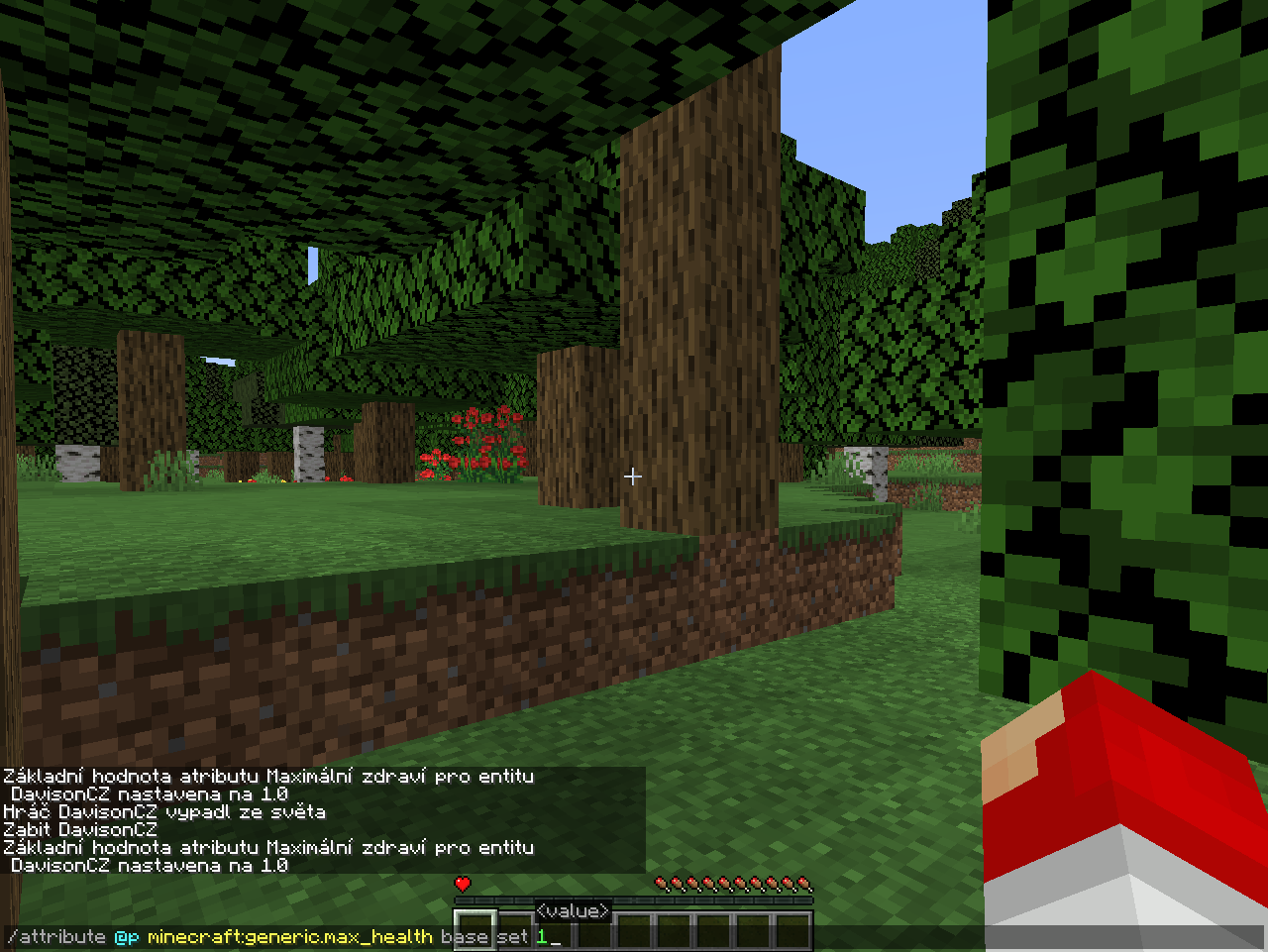1)when I type command /attribute minecraft:generic.max_health base set 1