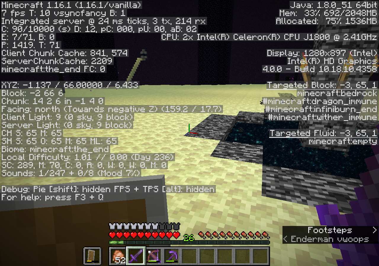 Please provide a screenshot of the world with the F3 debug screen enabled.