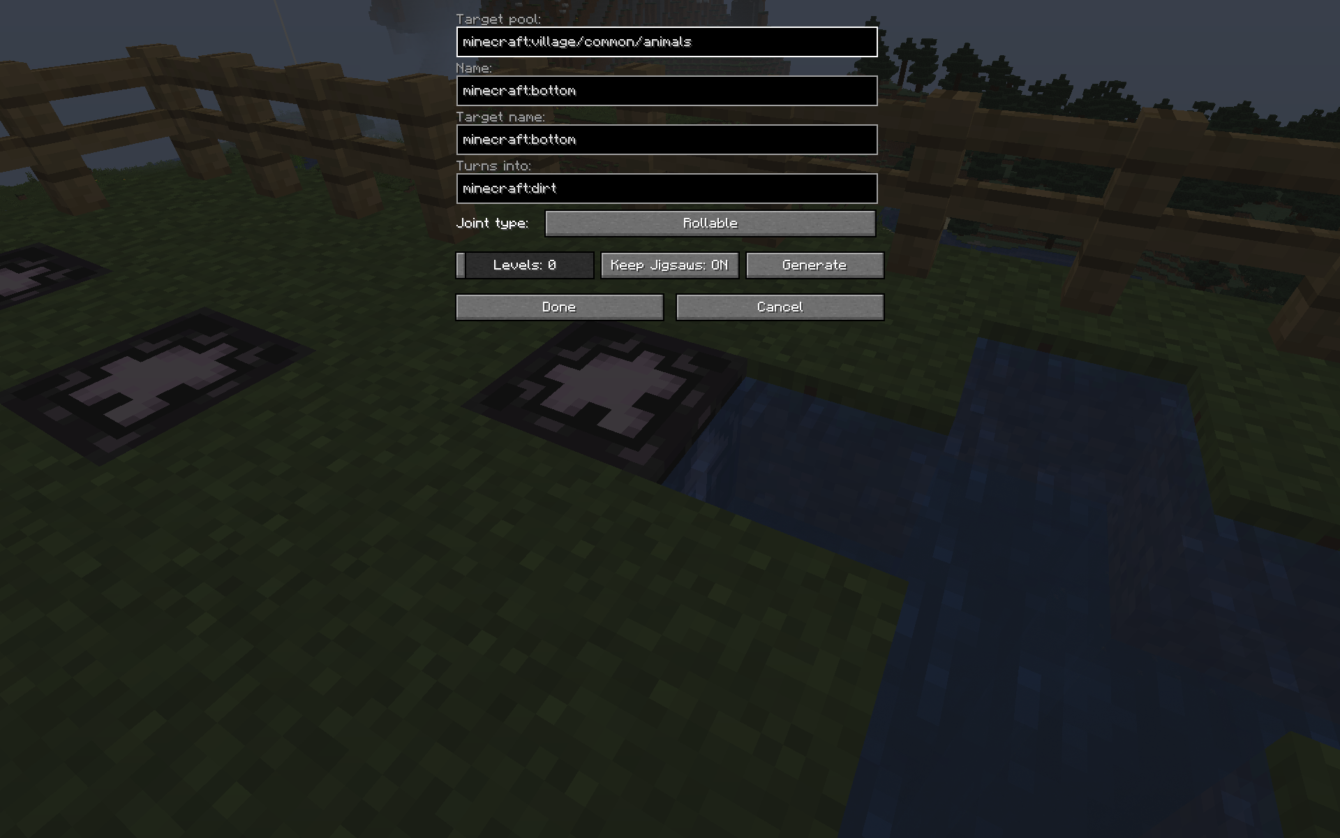 Some of the jigsaw blocks in village/plains/houses/plains_animal_pen_3 are minecraft:dirt despite the ground being minecraft:grass_block