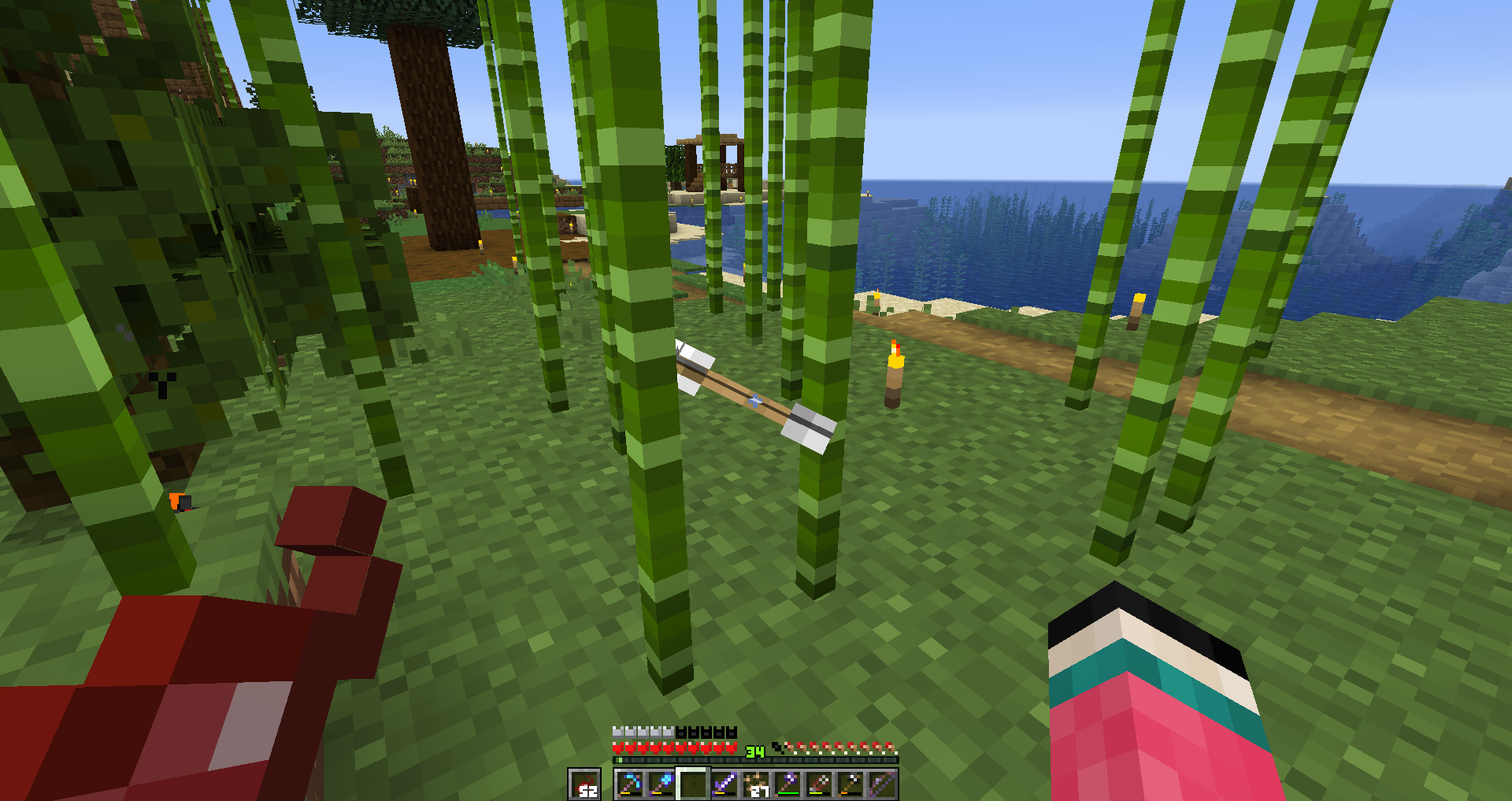 During a recent raid on my village, I was trying to escape arrow shots from illagers around my base. When I entered my bamboo forest I was being shot down. when the raid ended, the arrows still stayed there. Since then (about 30 or 40 Minecraft days later) the arrows have still stayed there.