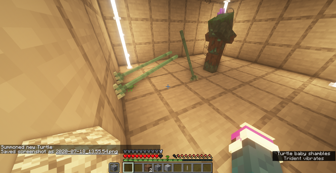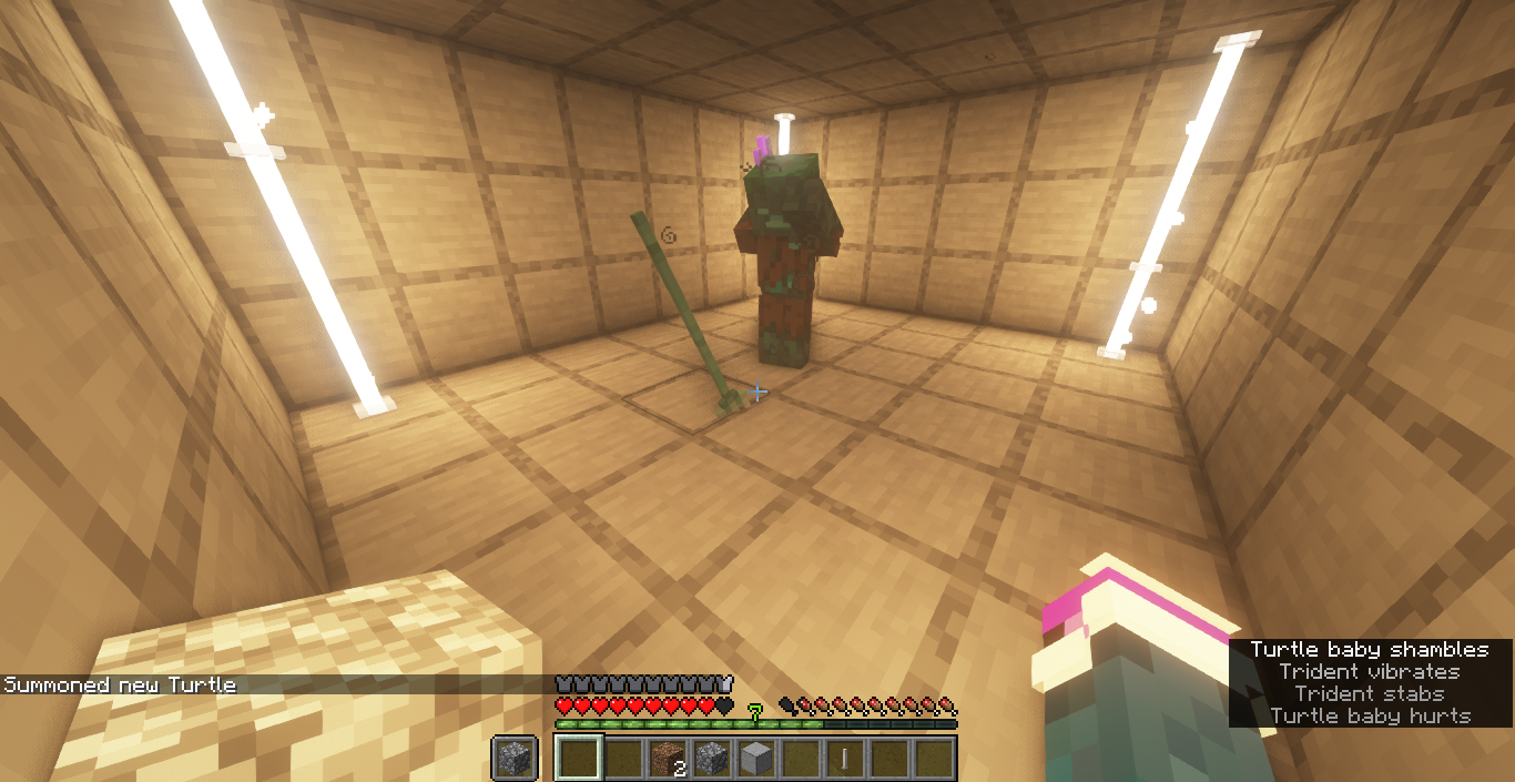 A Drowned was spawned in by a certain command, but was unresponsive to the player...