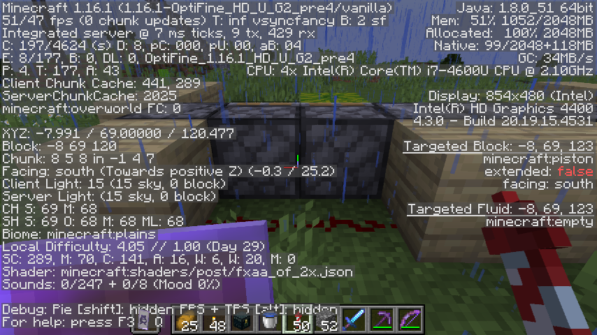 Please provide a screenshot of the setup with the F3 debug screen enabled.
