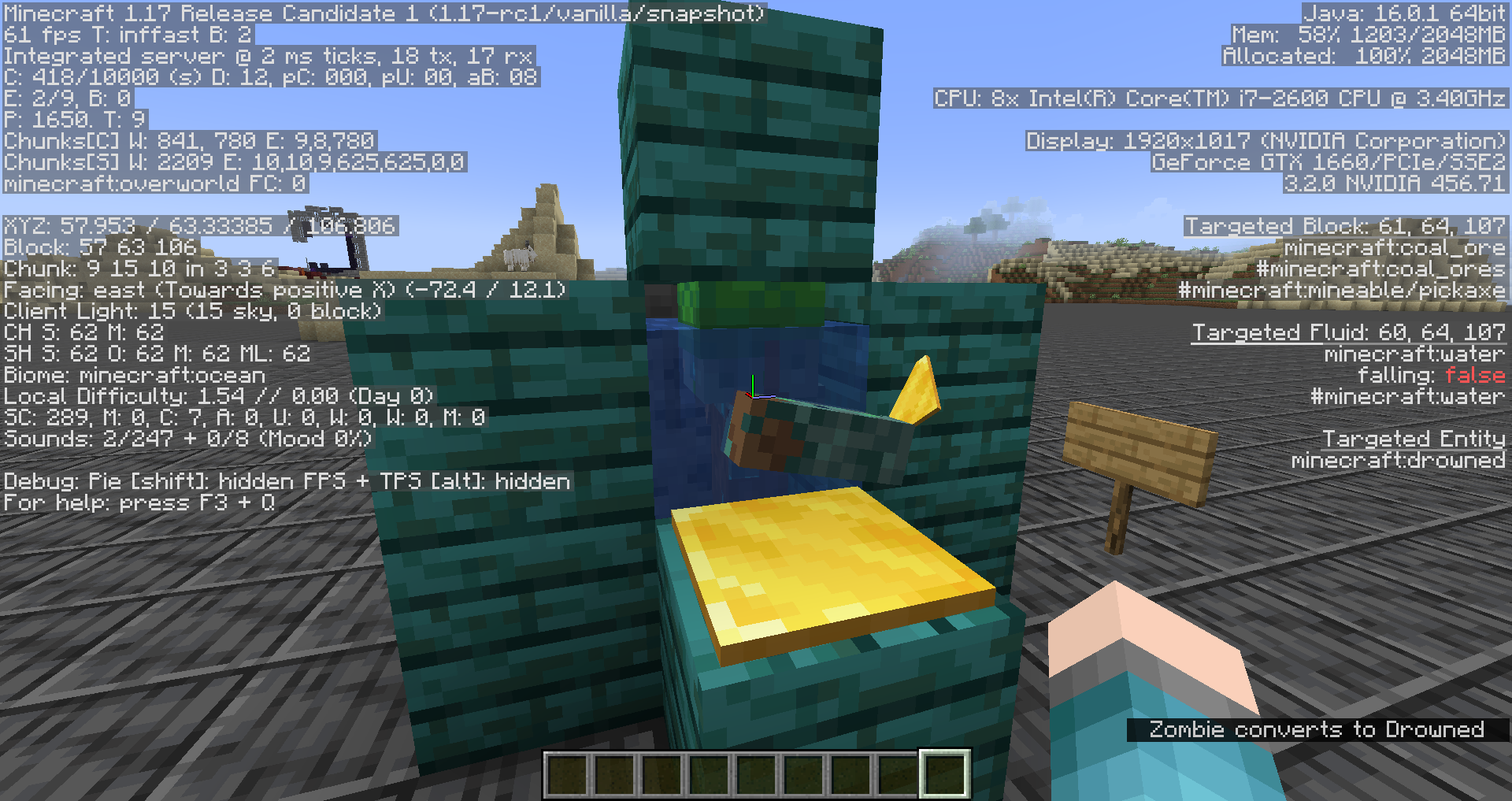 Summon a zombie in some water that is wearing a turtle shell helmet by using the command provided below.