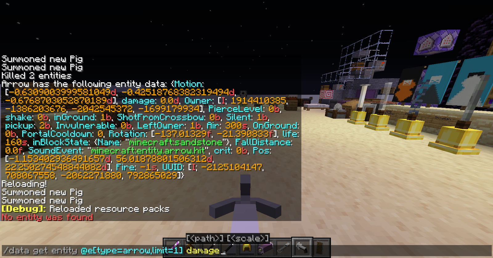 I could've fired it from a normal crossbow and edited the function for arrows shot from any crossbow but thought it wouldn't be a problem and I also forgot to open the F3 menu. Should've done that from the start to clear up the ambiguity.