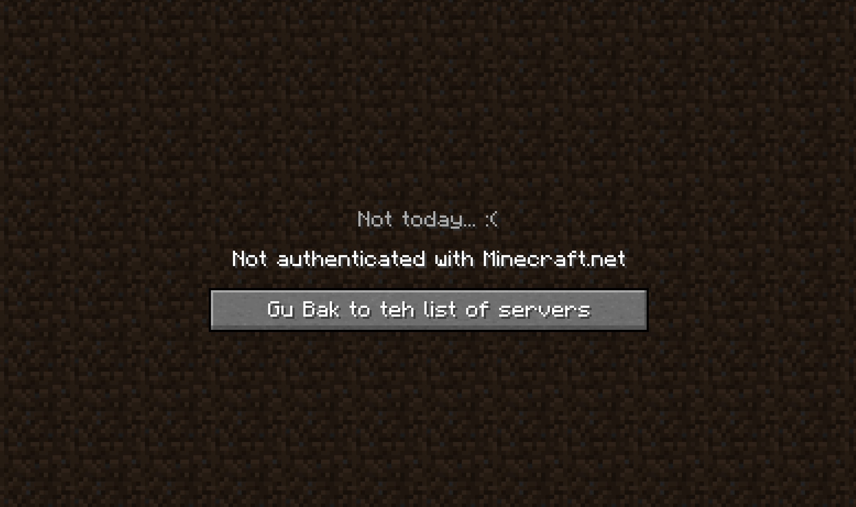 IĀ was just normally going to hop on to my favourite multiplayer server but for some reason it wouldn't let me. I guess I did have the language changed to LOLCAT and my username had also been changed, but it should've worked anyway. right? I was on 1.15.2, the update I always on so that couldn't have been the problem