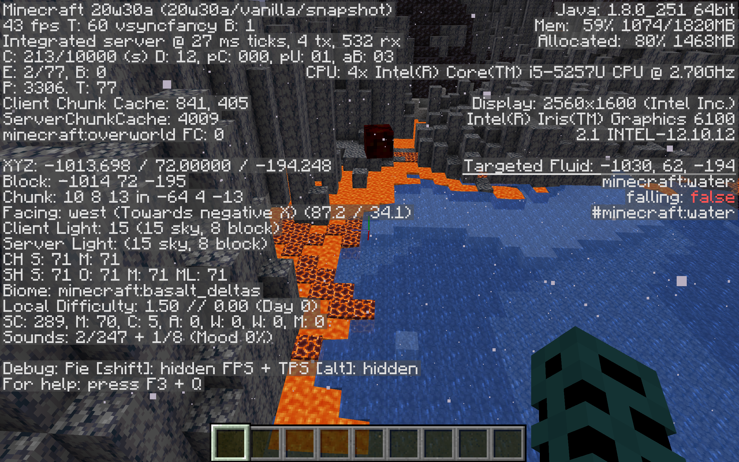 In basalt deltas single biome worlds, lava can generate on top of and right next to water. Lava in basalt deltas didn't generate like this in 1.16.1.