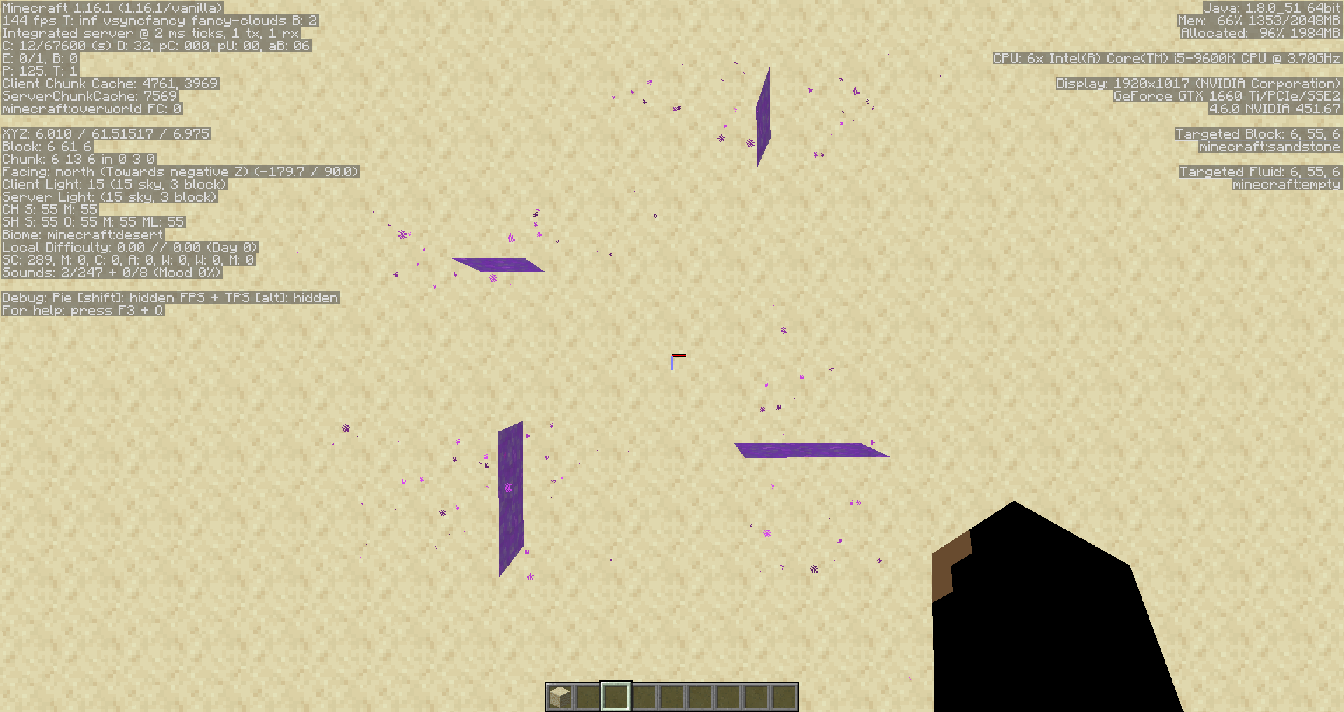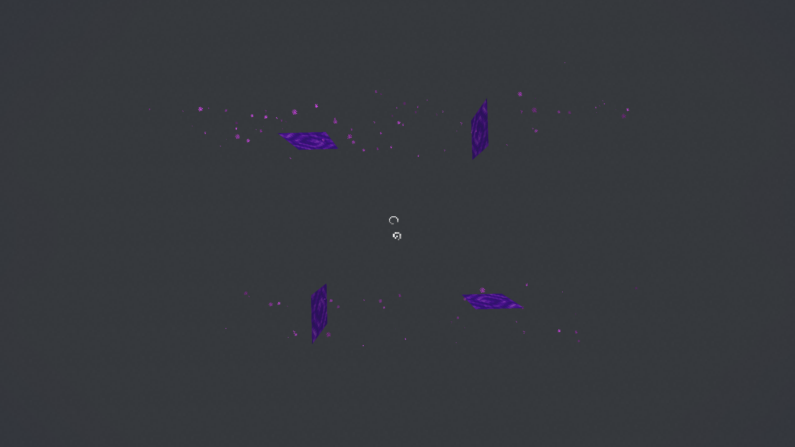 The second image shows a survival example, adjacent portals causing the particles to spawn on the wrong sides.