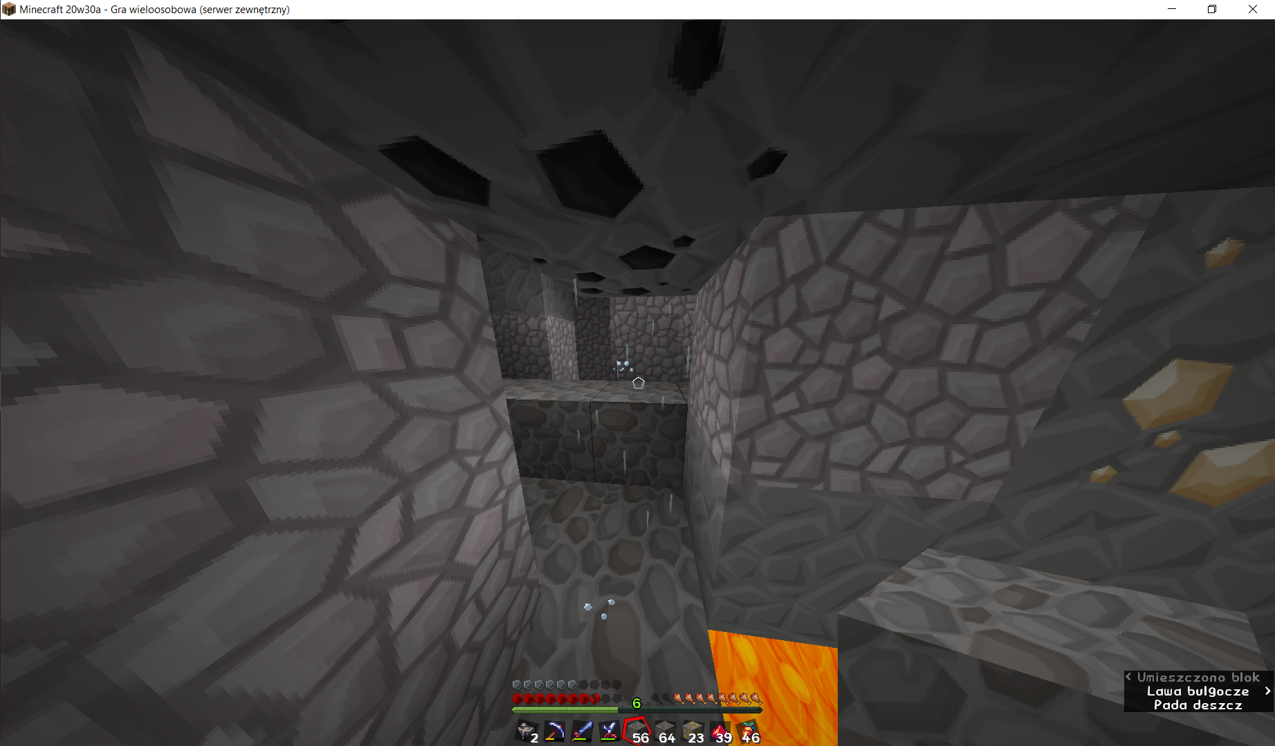 In random places in caves on y=11-12 there is some weird rain that appears out of nowhere and is gray.