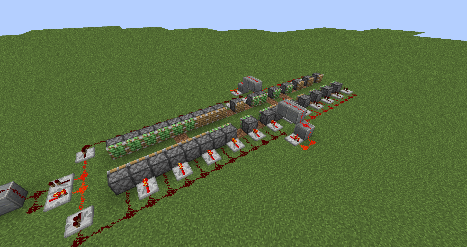 When activating and deactivating a large number of pistons, the pistons will disappear and reappear. It also causes any attached blocks to disappear with them.