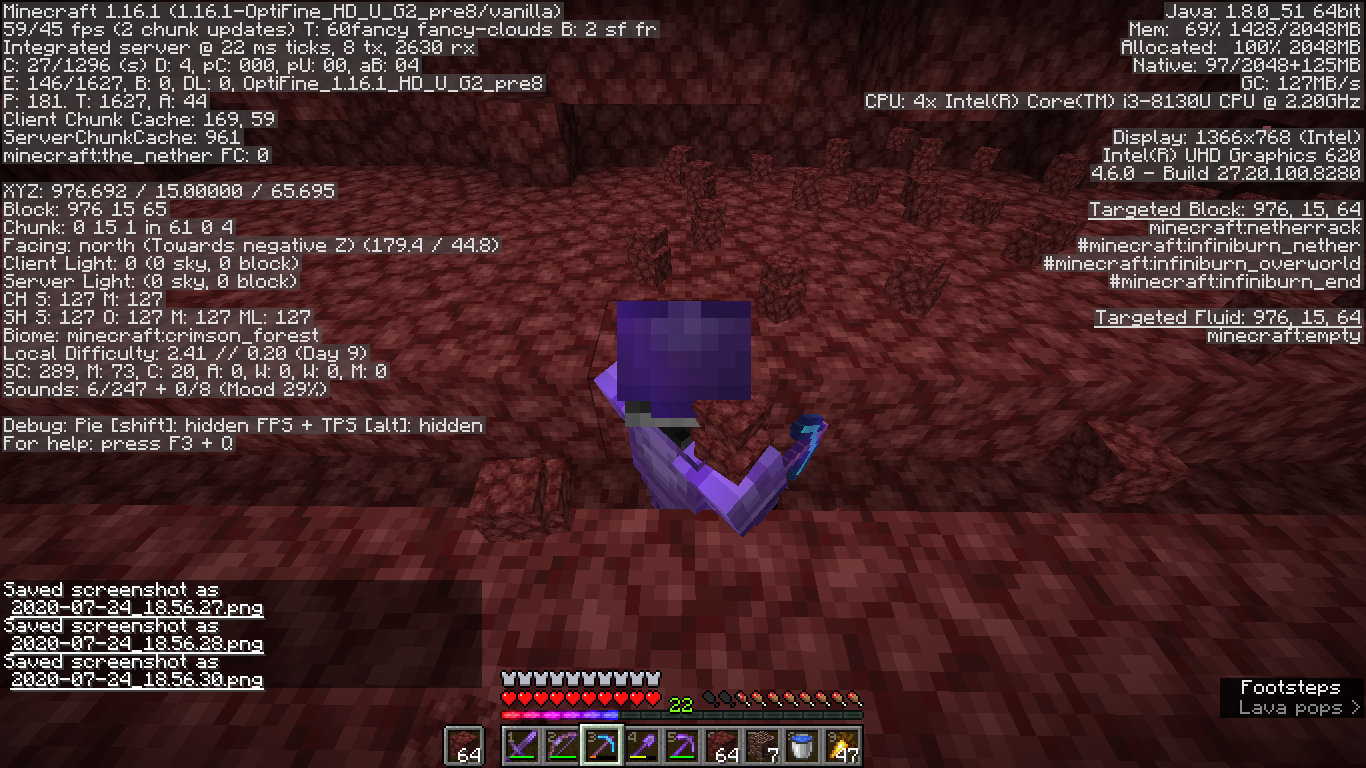 When I am in the nether sometimes when I change chunk my character becomes invisible and also when I leave that chunk I become normal again.