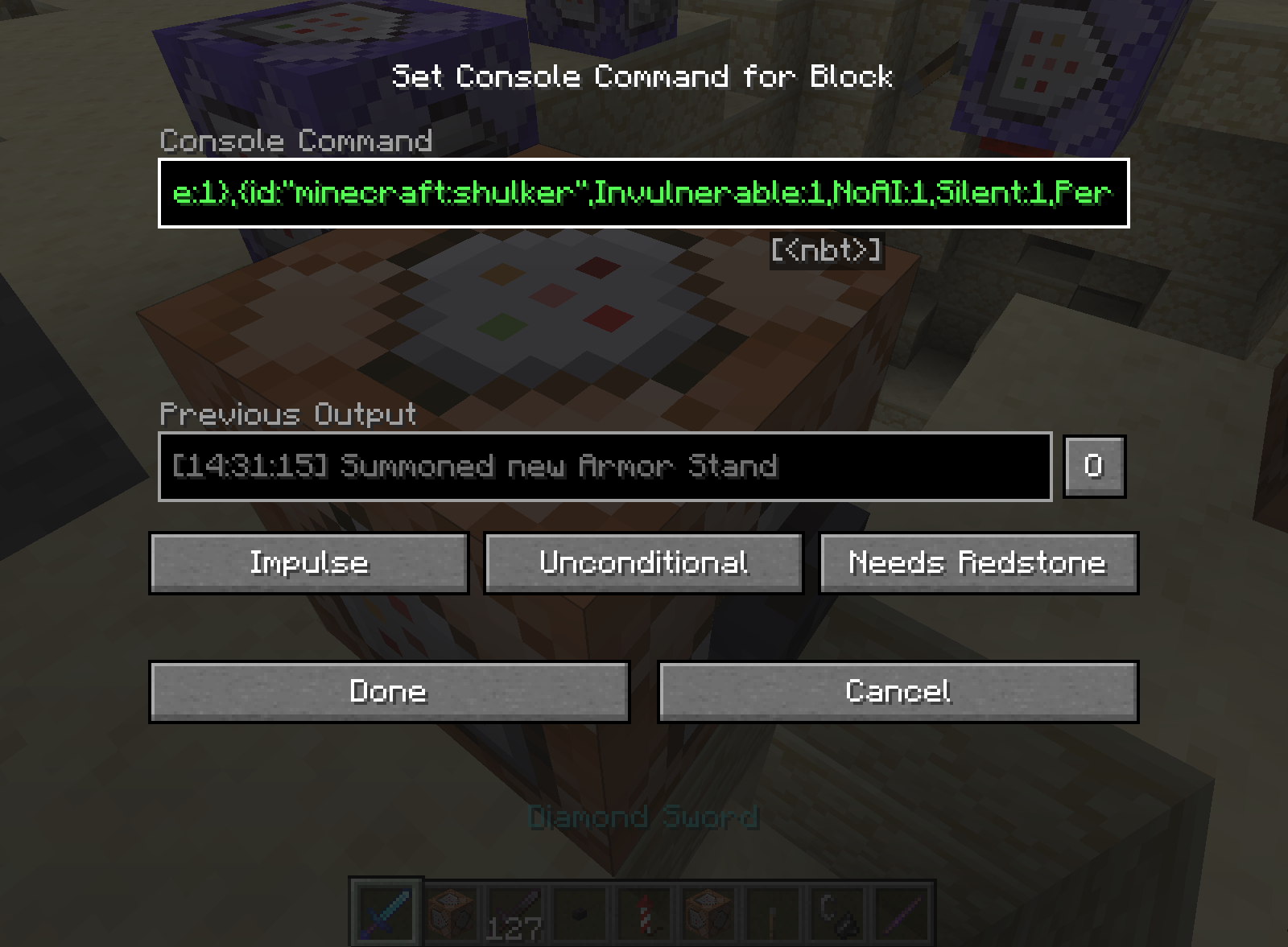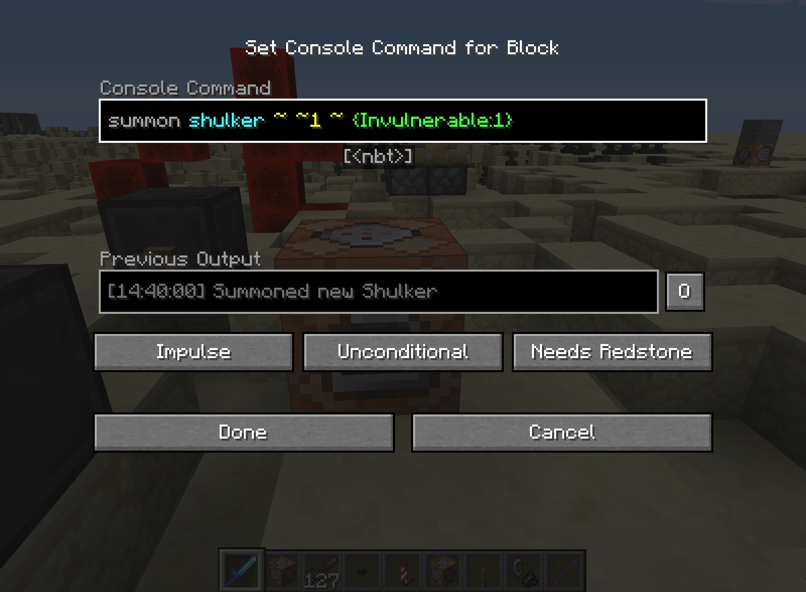 1. Write the command: /summon shulker ~ ~ ~ {Invulnerable:1}