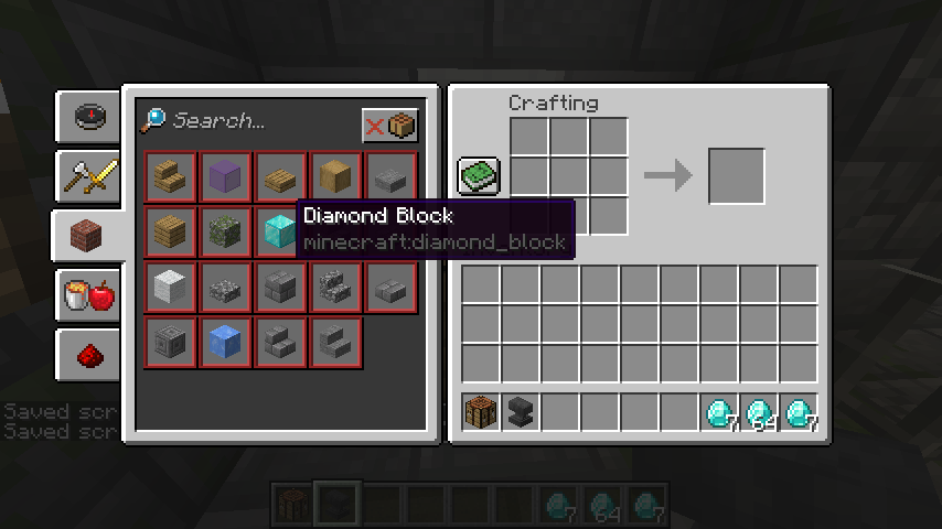 The recipe book does not show craftable items (in this case diamond blocks because I have 7 of regular diamonds) if it is renamed.