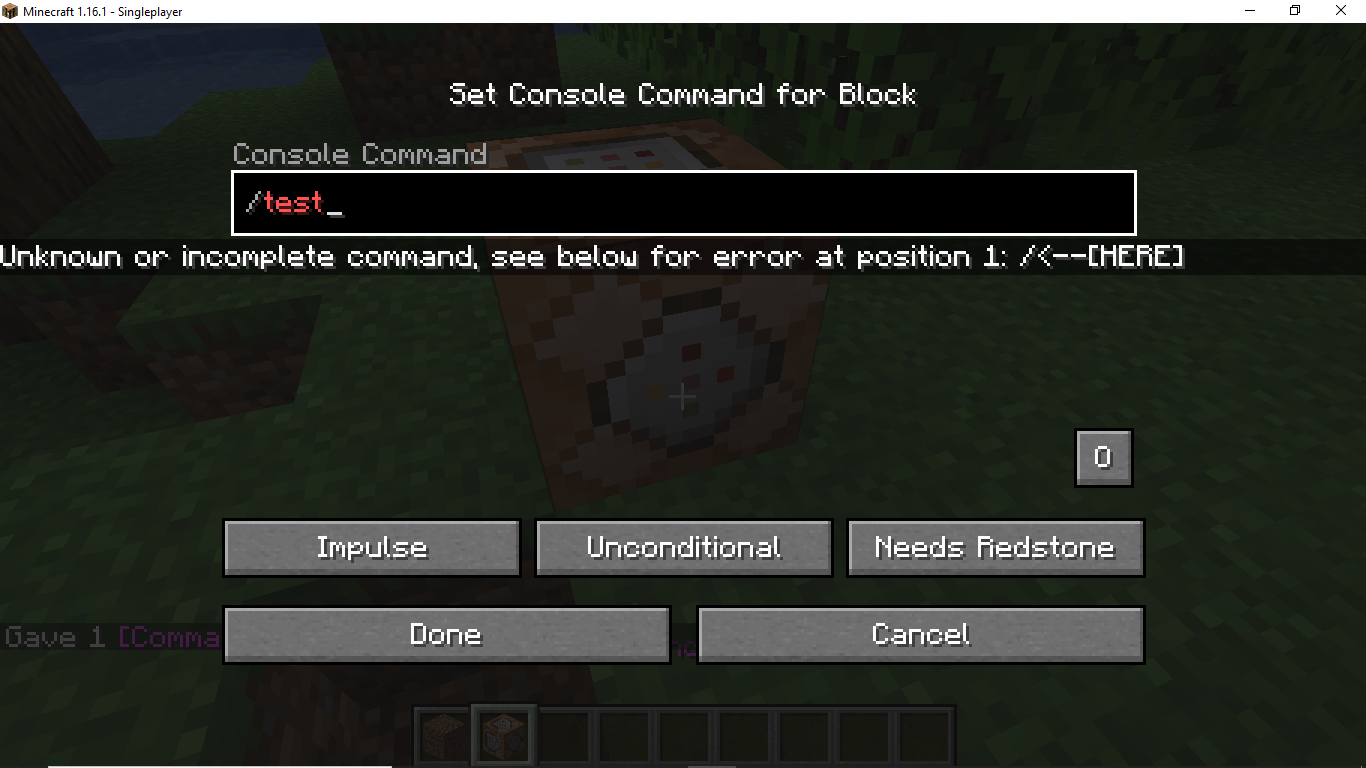 I was making a water dispenser with a command block, then the command block suddenly stopped. I used the command: particle minecraft:dripping_water ~ ~3 ~ , with the command block on repeat, unconditional and always active. if i looked in the command block GUI i can type, but i cannot select the 3 bottom buttons. [edit] i did a restart and it seemed to work but after a while it happened again.