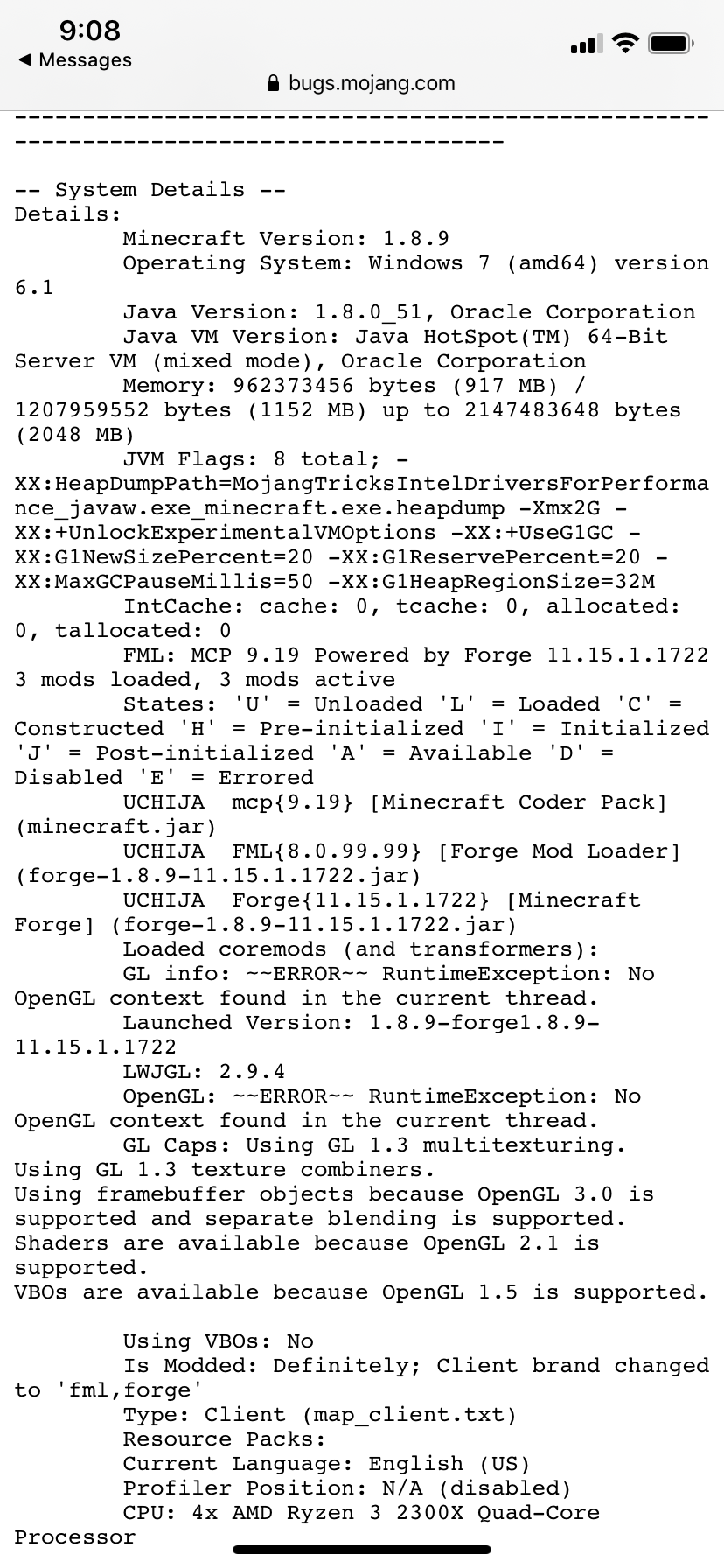 Your Minecraft version is outdated. We currently take issues for version 1.16 and the latest snapshot.