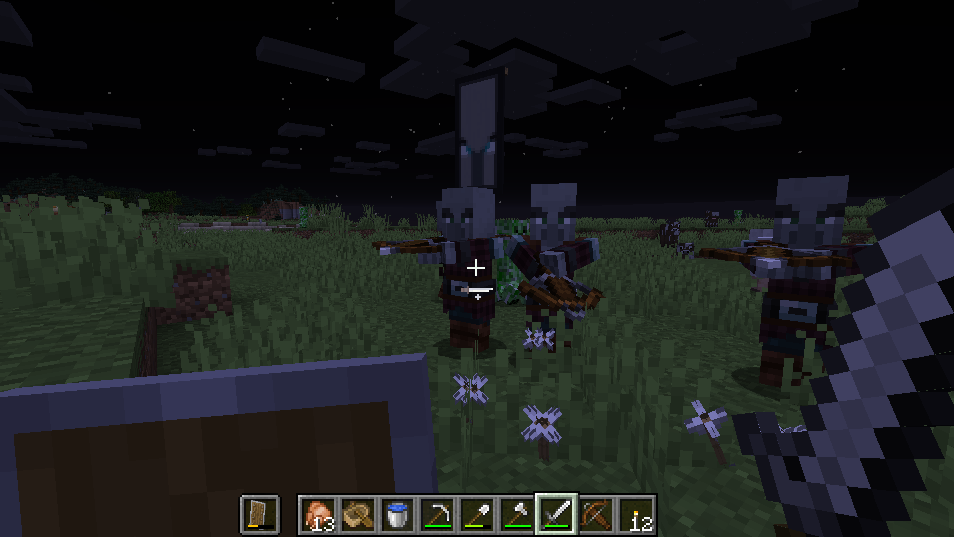 Pillagers try to shoot me in Creative (they are the ones that stalk you after getting bad omen) and the arrows deflect my body (killing them)
