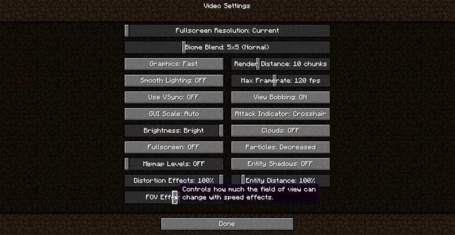 When hovering on some sliders from the game settings/options, such as Distortion Effects, FOV Effects and Darkness Pulsing, they show a tooltip containing said setting description. However, when you click to change the value, the tooltip remains and you can't see the percentage as long as you have the cursor above the slider, unless you hold click and move the cursor off the slider.