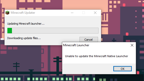 I had to update the launcher, as it wasn't letting me into Minecraft, so I reinstalled the game, only to be greeted with the updater. I thought to myself, "okay no big deal I'll just wait it out." Before I know it, it gets stuck on a certain percent and then completely quits on itself. Stating, "Unable to update the Minecraft Native Launcher." I've tried many times to uninstall and reinstall. I've tried restarting my PC and nothing seems to be working. My mobile hotspot is fine too. It was working just fine a couple days before, but then this suddenly became an issue. I've looked around online for help, with not much to go off of. I couldn't seem to find any help from anywhere. I did see something that said it was the launcher itself, but I'm not even too sure on how accurate that statement may be.