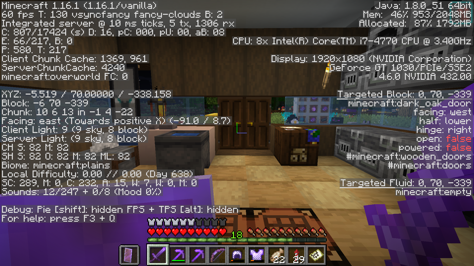 Please provide a screenshot of your game while you are in the world with the F3 debug screen enabled.