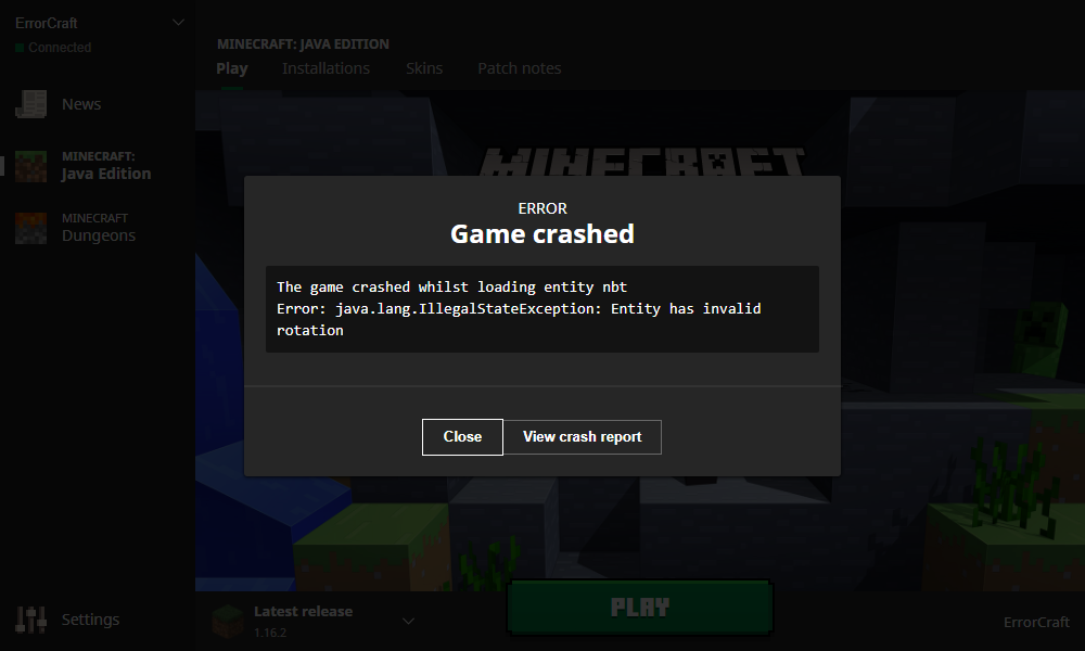 One thing to note That attepting to rejoin that world after the crash will continue to crash the game and won't allow the player back into the world.