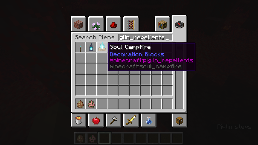 Blocks which repel piglins, as well as items they're afraid to pick up, are controlled by tags called minecraft:piglin_repellents. However, this tag does not seem to have an entities equivalent, which is odd due to the existence of mobs which scare piglins (e.g. the zombified version).