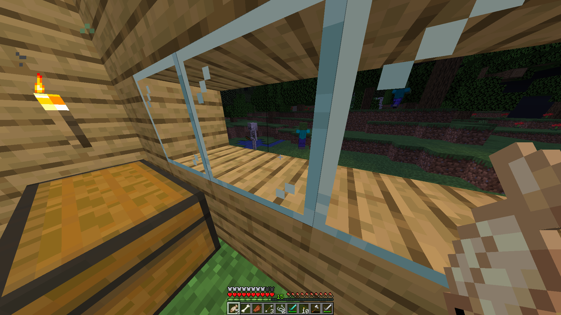 I was in my world when suddenly a horde of hostile creatures attack me and almost kill me, I go to my house (which has crystals) and they act like a block that does not let light pass