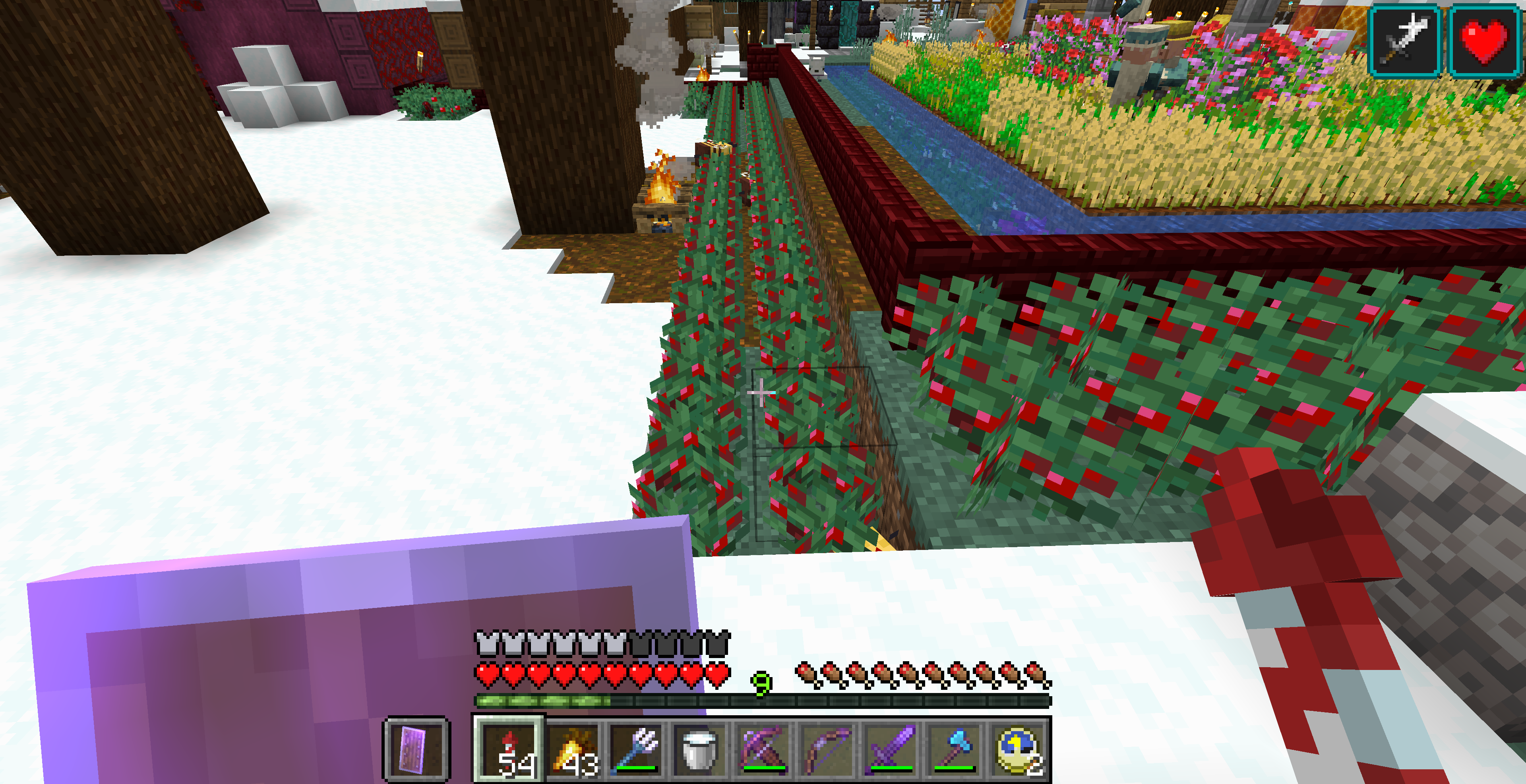 Make a long wall with two layers of sweet berry bushes in front of the wall for its entire length