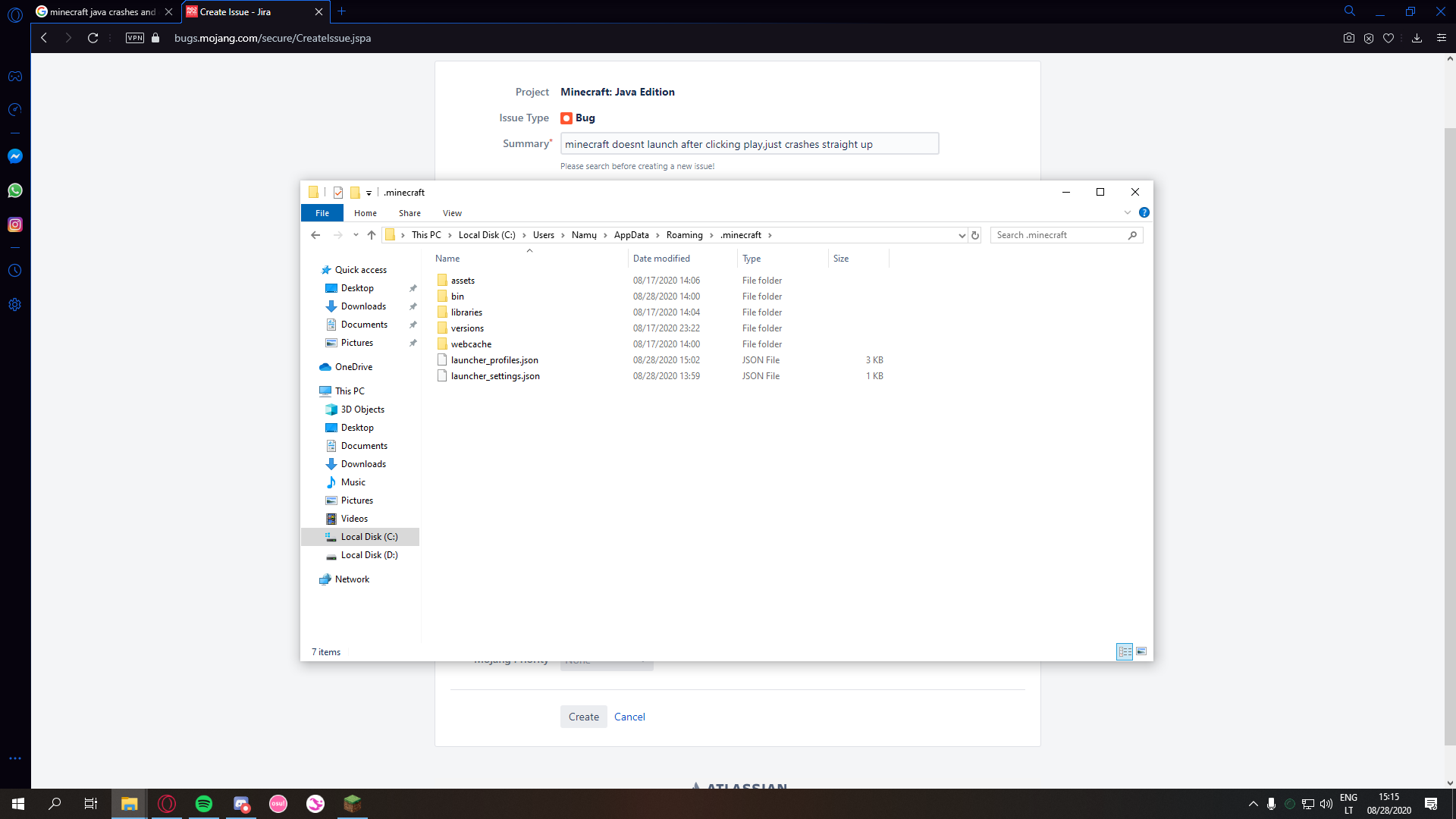 basically before the game was working perfectly fine, but around 3 weeks ago one of my pc's hard drives stopped working, so my brother restarted/reinstalled windows manually (not by restart button in windows settings). after that, my minecraft after installing wouldnt launch after clicking play. i tried reinstalling minecraft itself but that didnt fix it. i tried googling up the issue, maybe someone else had it too. but i couldnt find any useful solutions. the crash message doesnt give any error codes or anything, neither a crash report. i searched for crash folder in .minecraft folder but it is not there. it has been like this for past 2 weeks, same on all versions and snapshots ive tried (1.15.2, 1.16.1, 1.16.2 and latest snapshot). i will attach screenshots and videos of what happens.