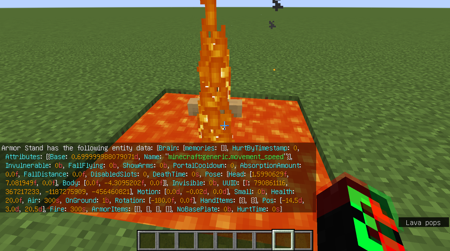 Armor stands don't receive damage in lava, instead, they catch fire and are destroyed a few seconds after leaving lava.