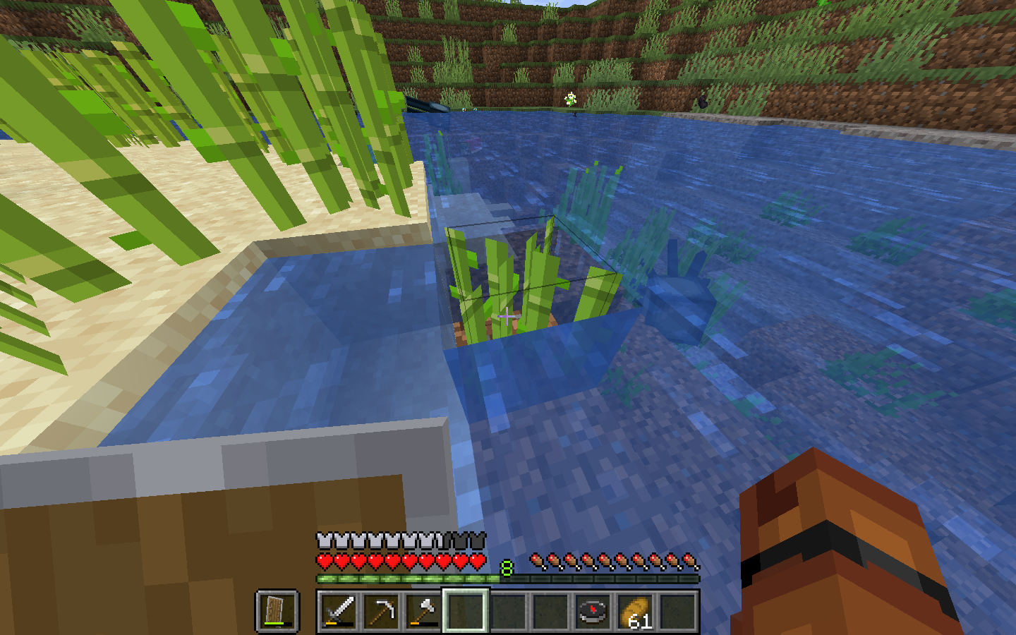 maybe someone already report that but its still in 1.16.2 that the sugar cane can in water in 1 block like in this image