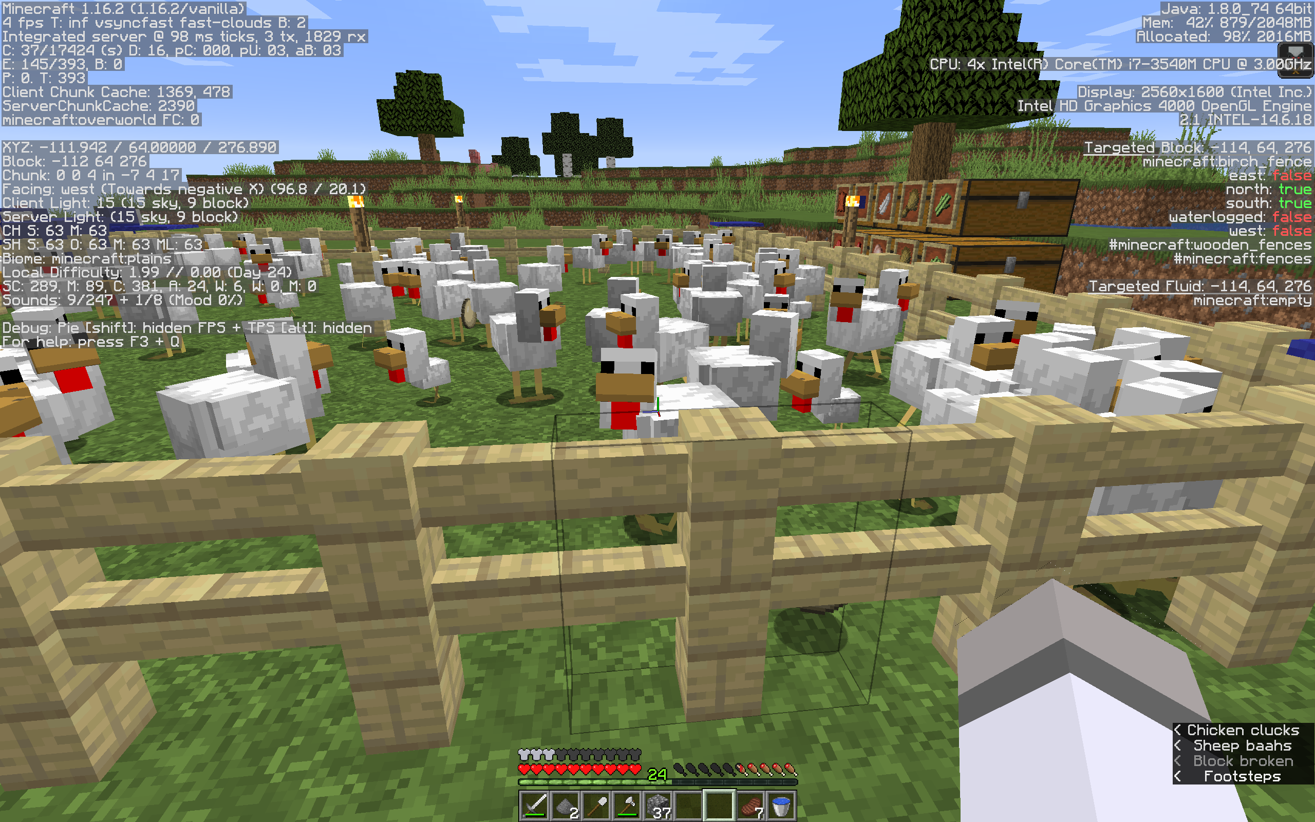 While near chickens in my survival world, an annoying low crackling noise can be heard.