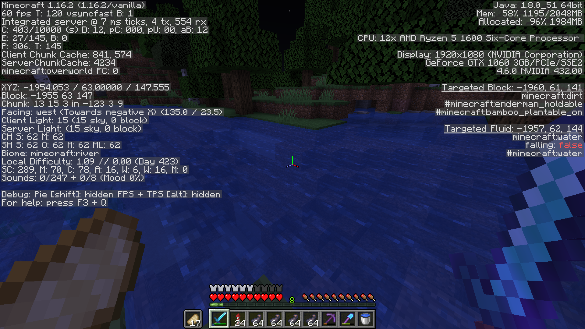 Can you please provide a screenshot with your debug screen enabled (F3)