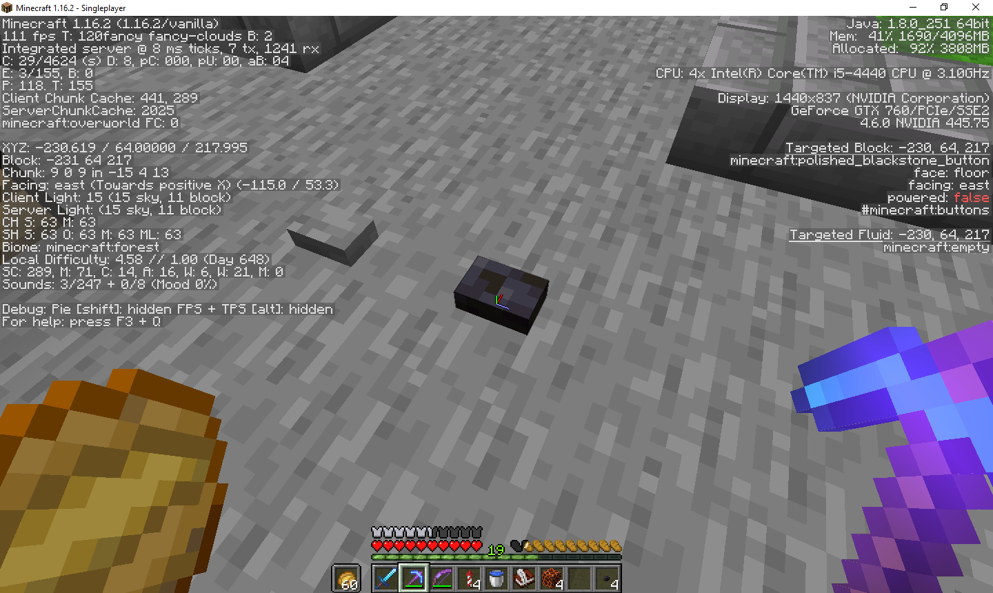 Please provide a screenshot of your game with the F3 debug screen enabled.