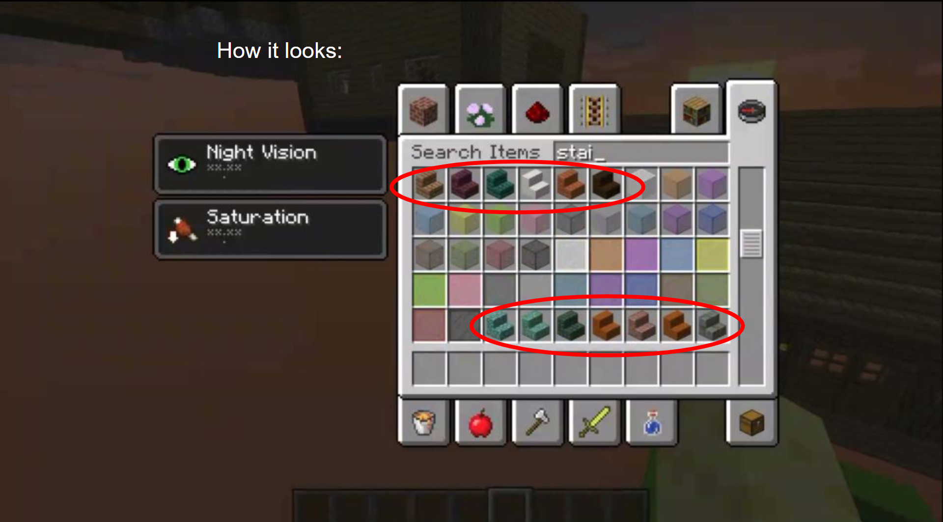 When you search stai or sl in the search bar, different kinds of stairs/slabs aren't put together.